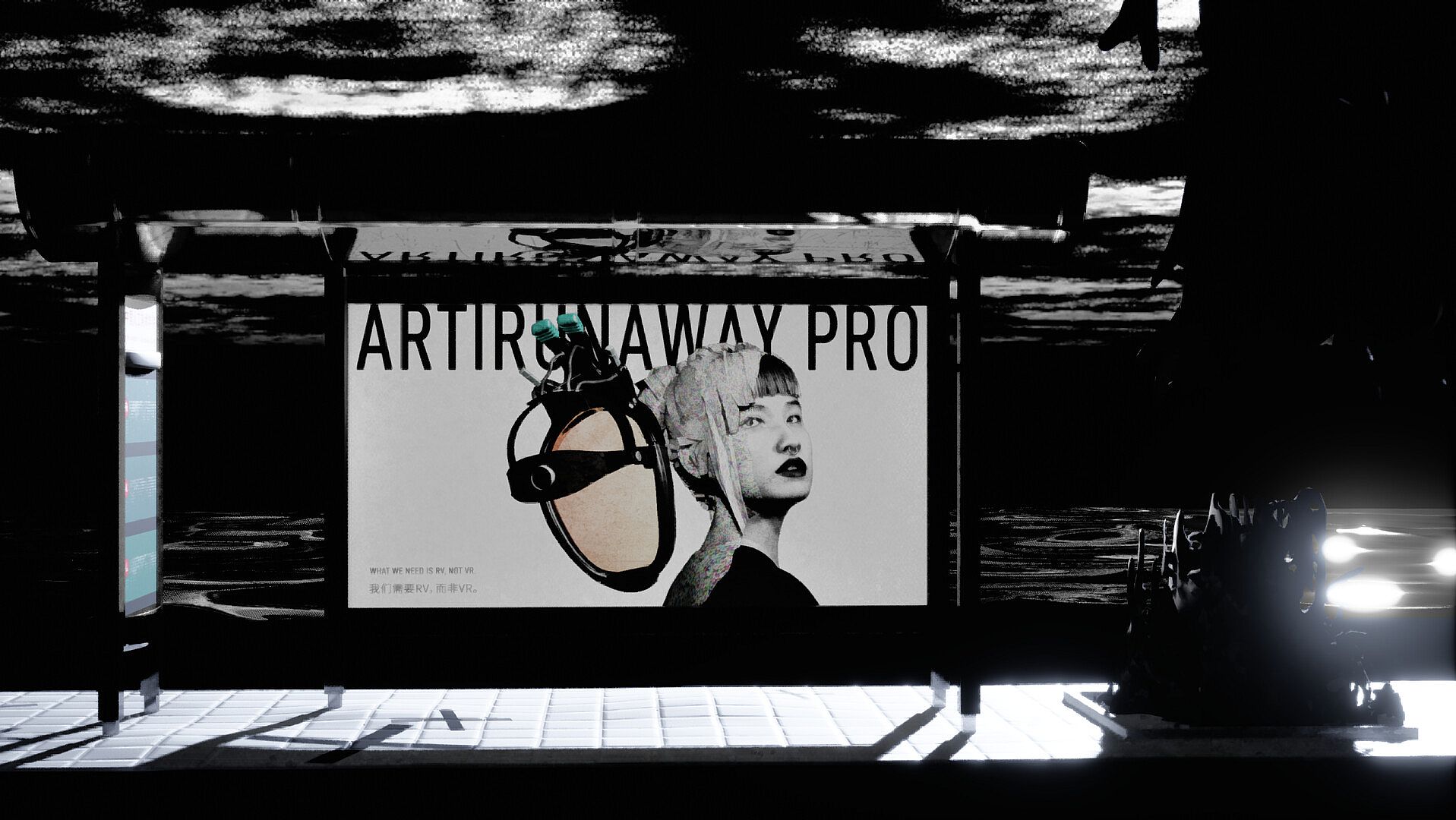In this future, the protagonist wears a RV (Real Virtuality) headset that claim to show "reality" within the "virtual." The seemingly real traces revealed by the RV glasses (such as unfinished noise and uncolored white objects) trigger his mental breakdown and fear of reality.
