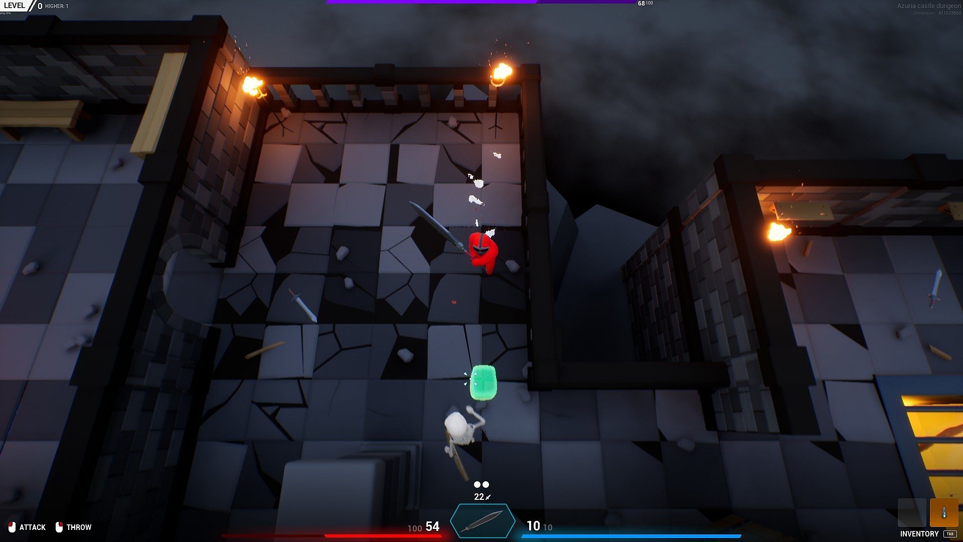 Uproar is a third-person game with elements of rogue-like and dungeon crawler genres, where you have to defeat your opponents with improvised weapons. There are 2 gamemodes - multiplayer and singleplayer.