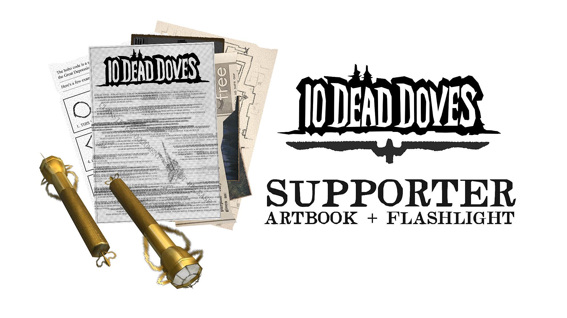 10 DEAD DOVES -- Supporter Edition! Contains a cosmetic Ornate Flashlight for use in-game, and the 10 DEAD DOVES official art book: Containing sketches, concepts, and behind-the-scenes content!