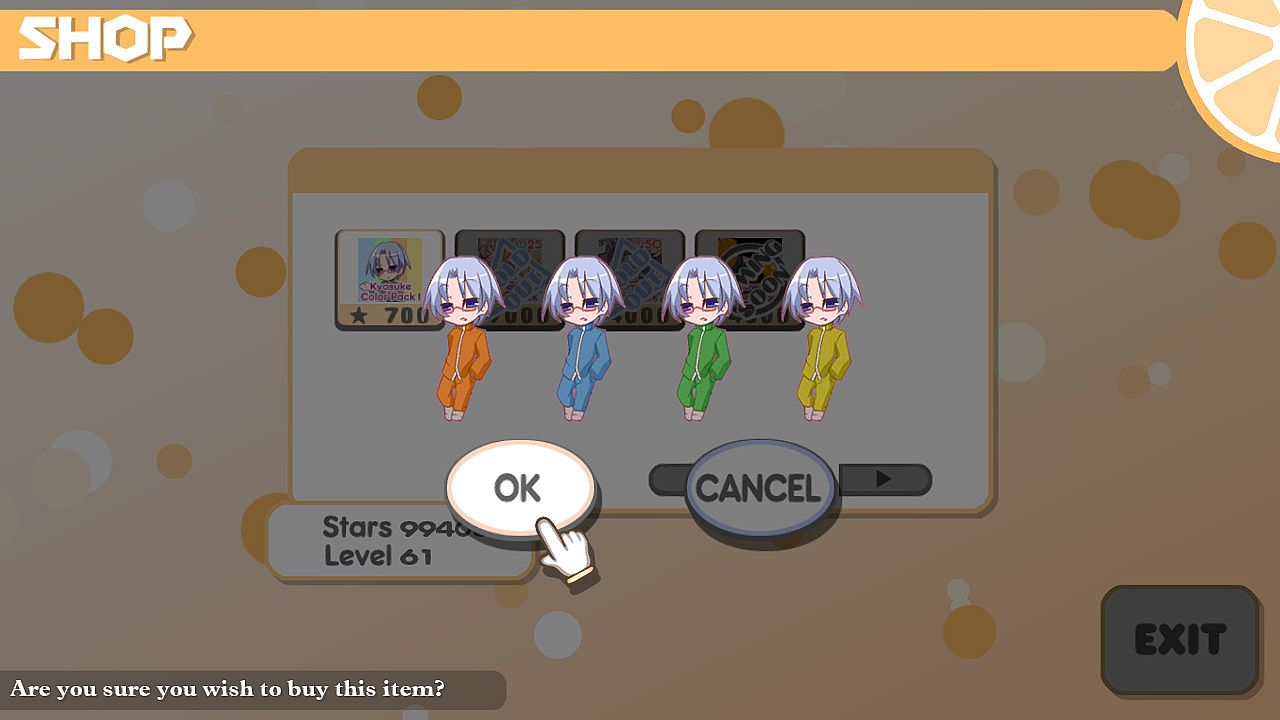 This Extra Character Pack for 100% Orange Juice adds 2 new playable characters from developer Orange_Juice's games - Saki and Kyousuke, as well as announcer voices for them!