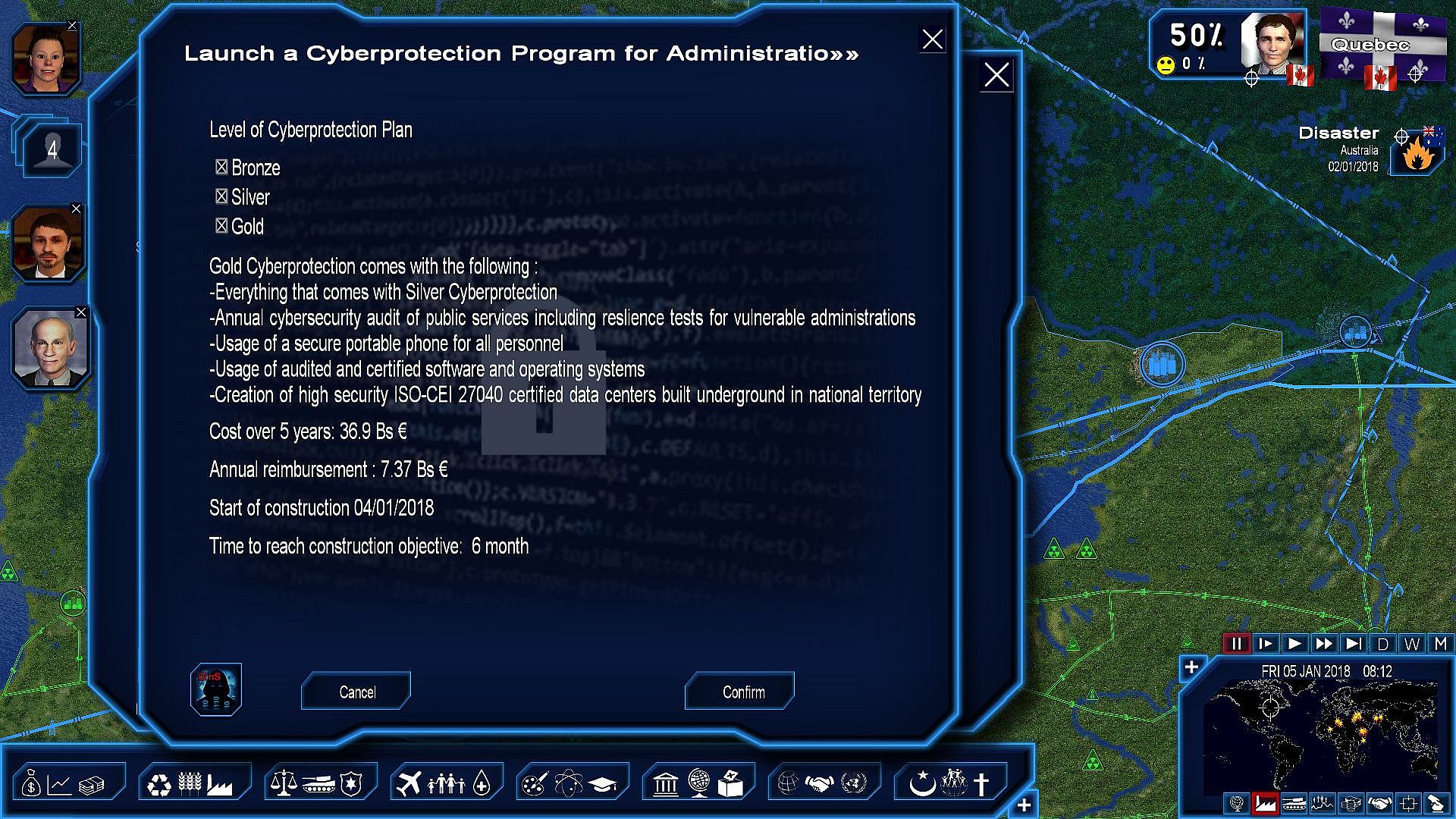 Protect your people and vital infrastructures from cyberattacks by criminal organizations or hostile countries. It's your turn: launch cyberattacks to destabilize a country and its head of state, influence electoral results or temporarily incapacitate an enemy army. Meanwhile, watch out for leaks and head off scandals. As head of the party, invest in cyberprotection to safeguard against outside intrusion.