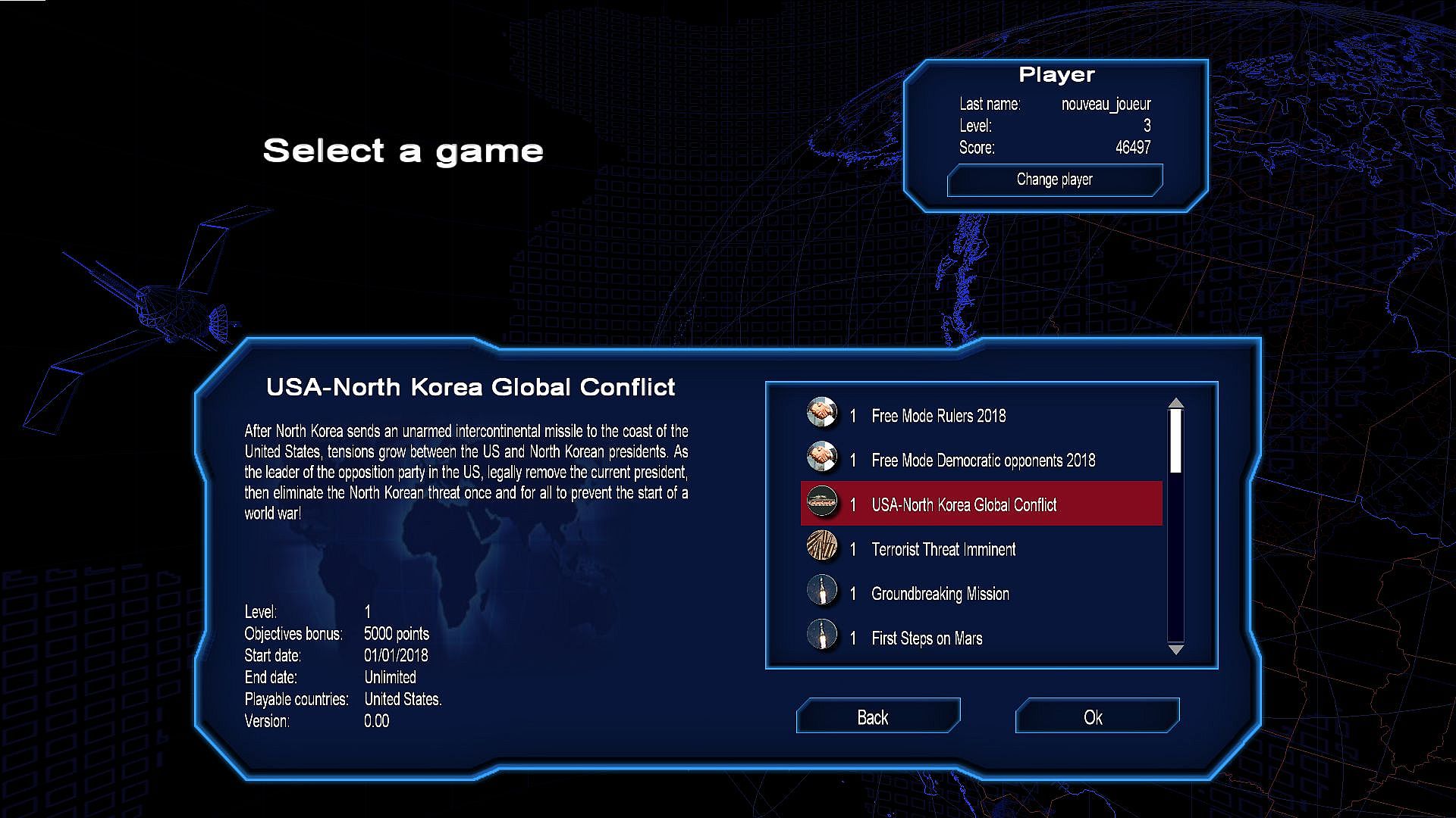 After North Korea sends an unarmed intercontinental missile to the coast of the United States, tensions grow between the US and North Korean presidents. As the leader of the opposition party in the US, legally remove the current president, then eliminate the North Korean threat once and for all to prevent the start of a world war!