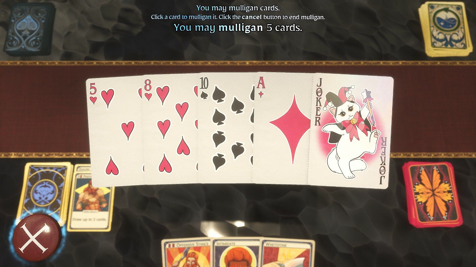Cat-themed playing card decks bring fresh flair to strategy RPG adventures on PC. Players select this deck through Options for use across all game modes. It showcases bespoke artwork with Scottish Fold, Siamese, and Sphynx breeds, plus distinct cat characters on face cards and a Jester cat as the Joker.