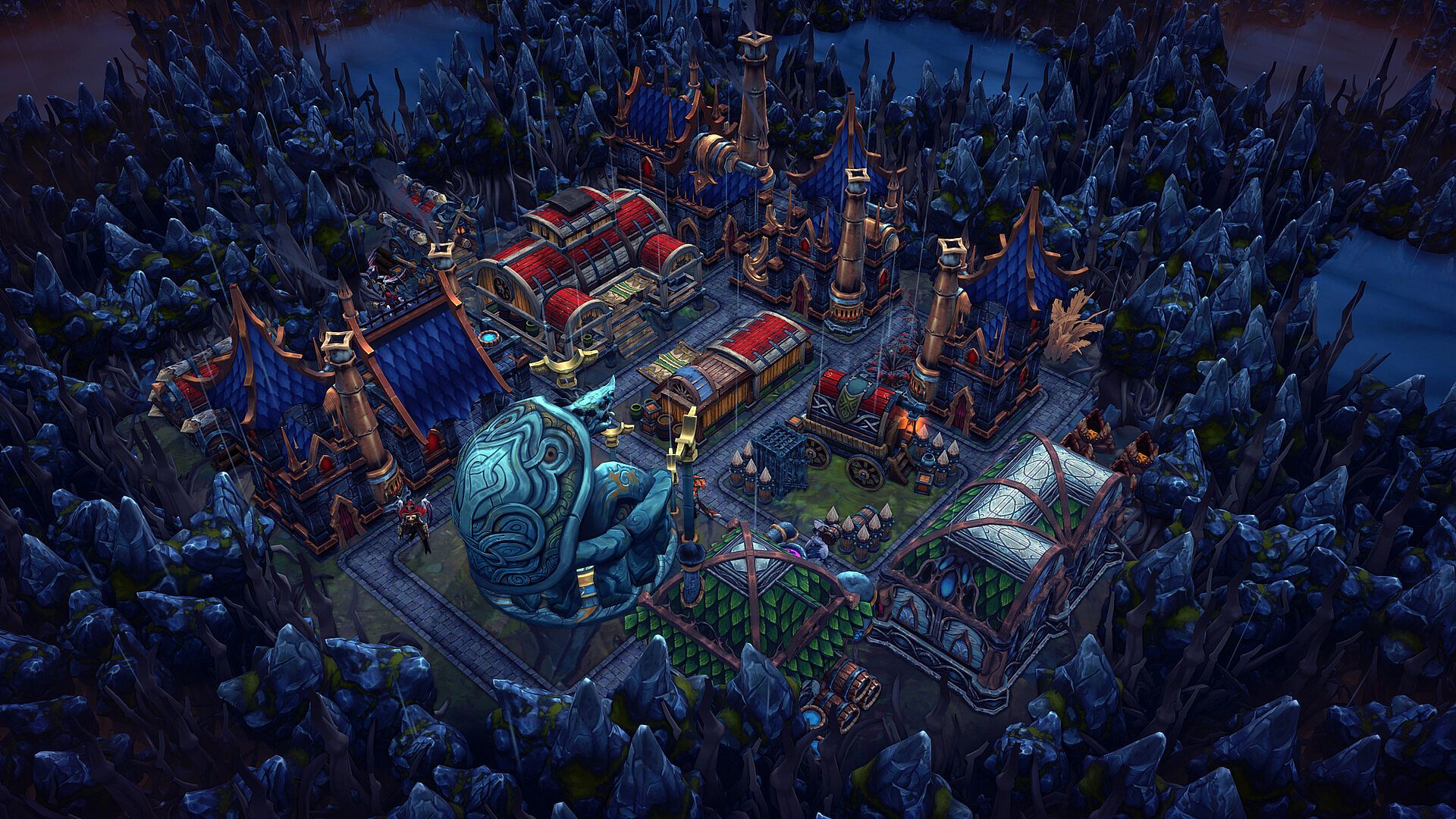 Tymczasem, dzięki przemytnikom na tyle zuchwałym, by przeciwstawić się Spopielonej Królowej, surowe Skaliste Wąwozy stały się dostępne dla osadników. Te jałowe ziemie obfitują w rudy i minerały. Namiestnicy, którzy zdecydują się budować wśród skalistych formacji, będą musieli polegać na handlarzach z czarnego rynku, jednocześnie pozyskując surowce z bazaltowych kolumn, wyrastających tu w miejsce drzew.