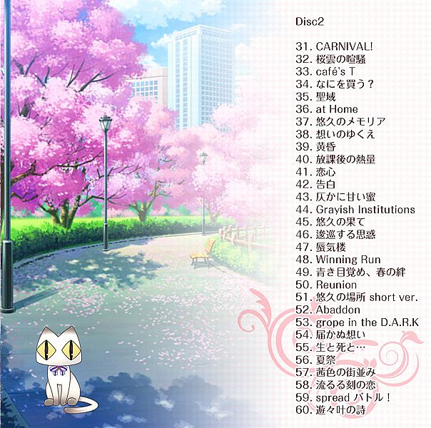 原声集共包括了2CD共60首曲目,游戏的片头片尾歌,以及全部BGM配乐均都收录其中,