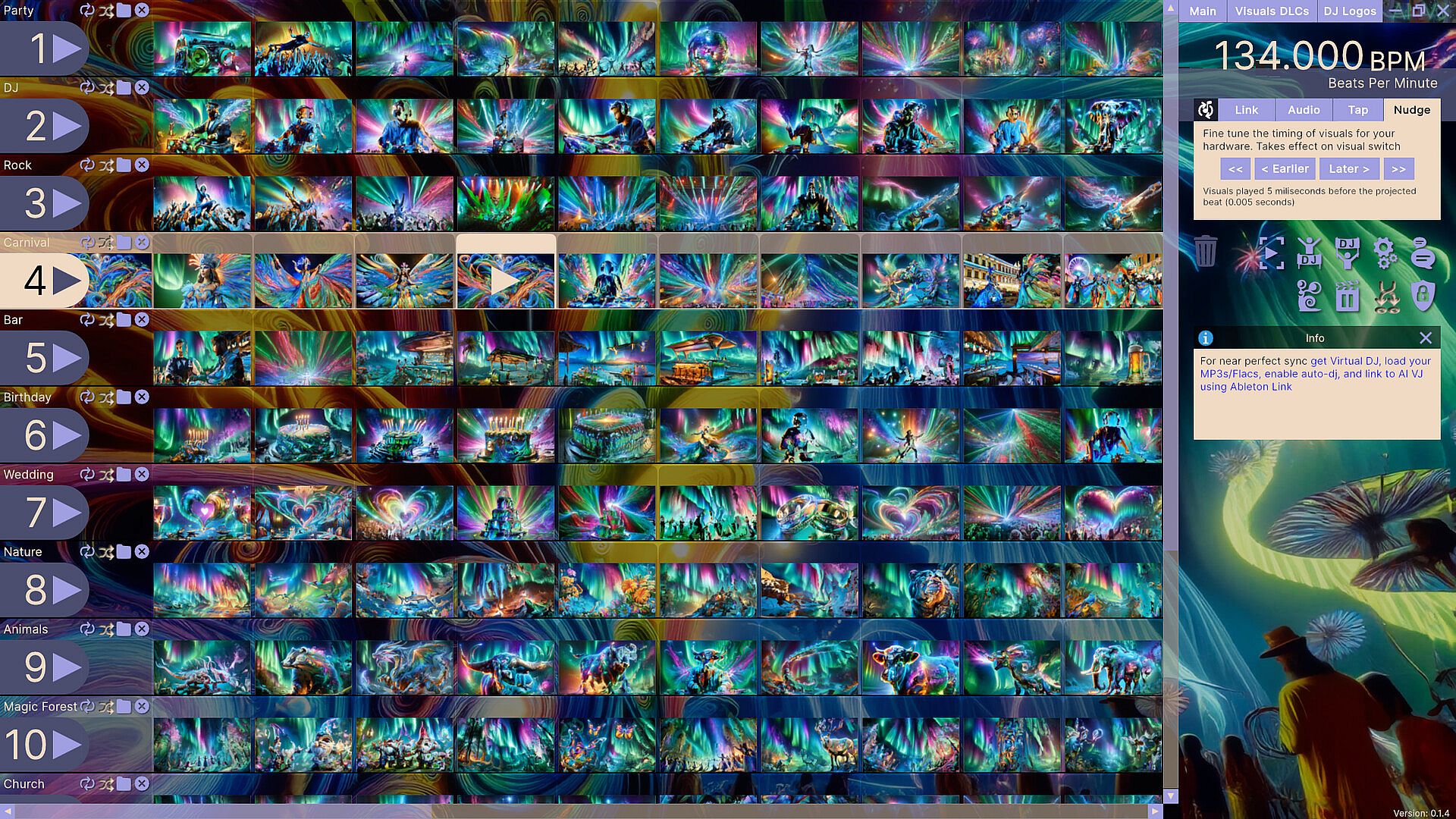 This DLC adds over 350 colorful aurora borealis artistic AI visuals, with a true northern lights vibe to AI-VJ!