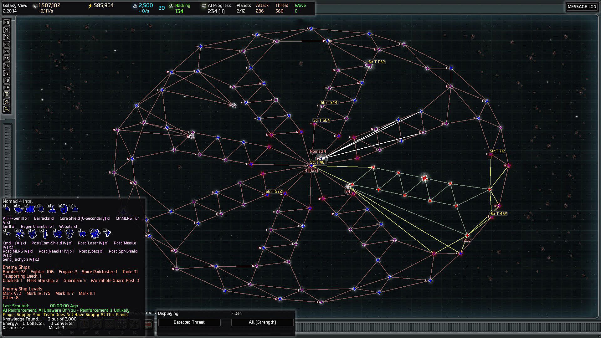 • Nomad Planets introduces dynamic topology to AI War for the first time, giving the player new challenges and opportunities beyond the previously-static wormhole network.