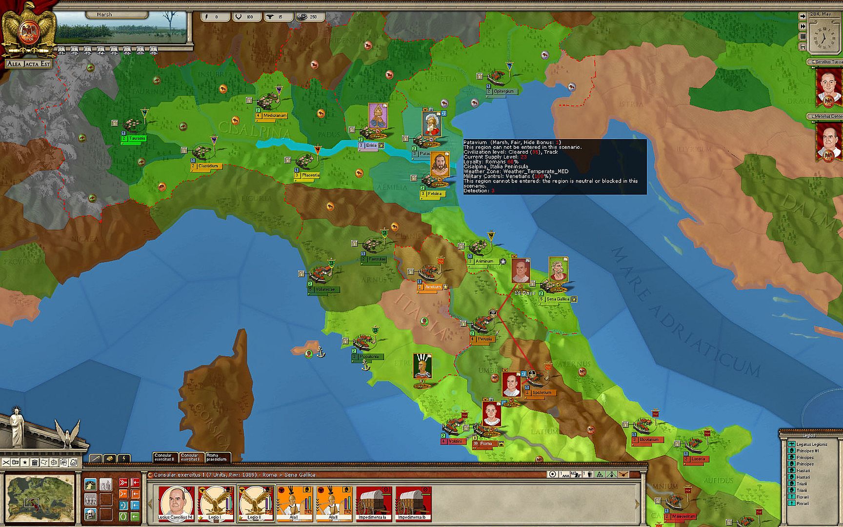 - Map: all of the Roman Empire and neighboring lands, with over 2800 different regions and seas, a lot of room for maneuver.