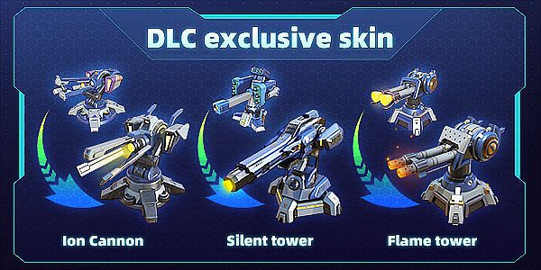 The Special outfit pack consists special skins for three kinds of survival mode defence towers:Silent Tower, Flame Tower and Ion Cannon.