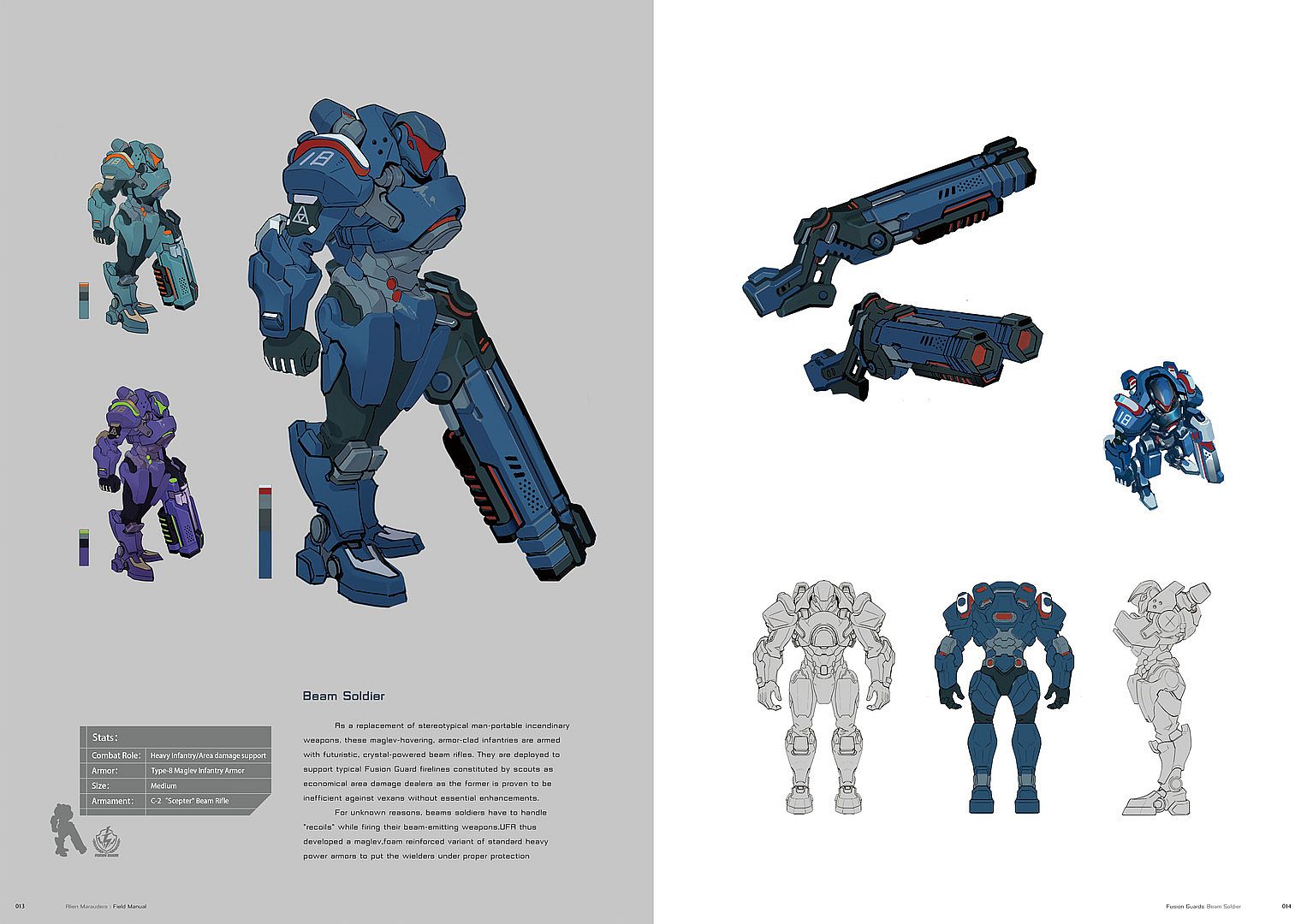See how our creativity comes into shape with concept arts reflecting different stages of development. The book features technical drawings and artwork from our wonderful art team. Alongside with different side notes showcasing statics, origins, lore, and other interesting facts, unveiling a new space frontier in an in-universe perspective.