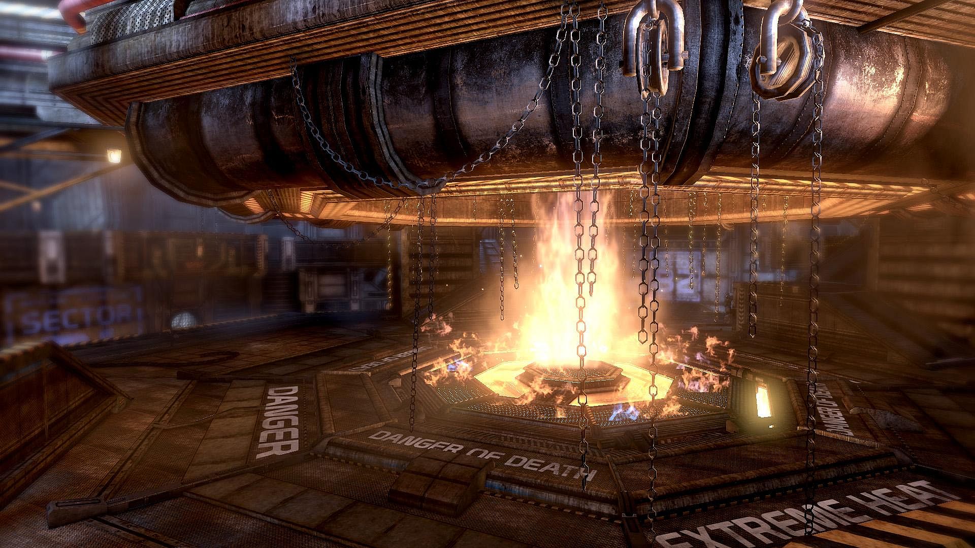 • Furious - MP map Built for all game types except Survivor, Furious is an arena style map placing players in a central cylinder shaped area dominated by a huge active furnace in the middle.