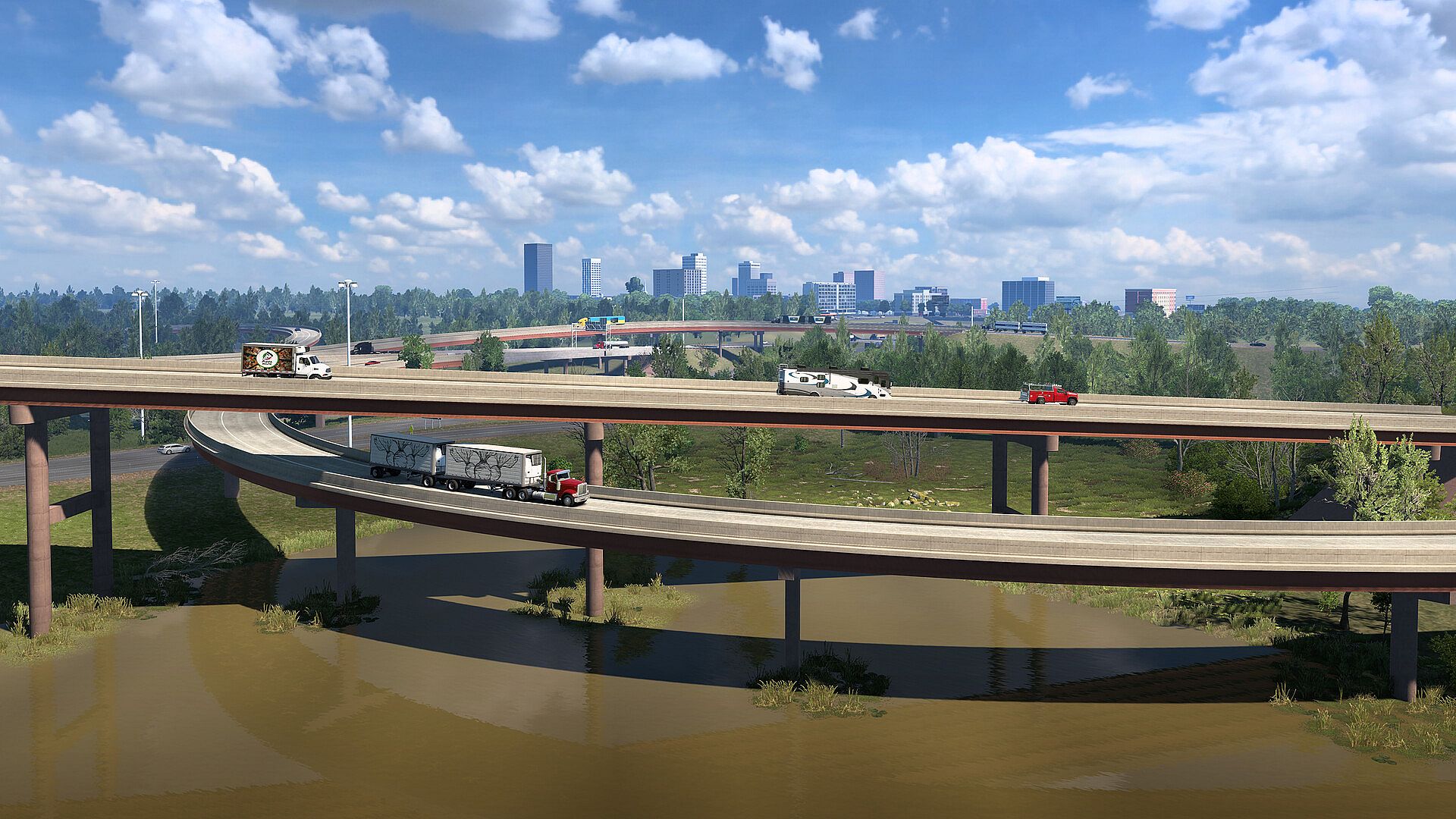 While hauling cargo, you will be able to not only see some of these beautiful landscapes and areas, but travel through a variety of large and small towns and cities, where you'll find industries, landmarks and more.