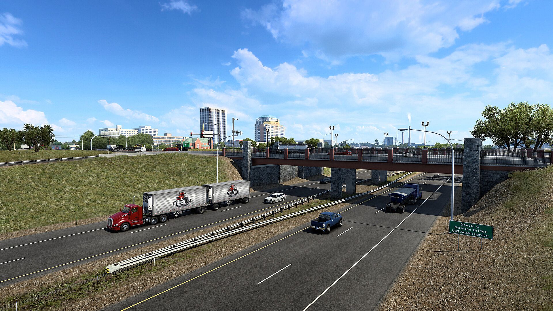 Nicknamed the Mile High City, Denver features accurate representations of famous landmarks and industries for drivers to discover and deliver cargo to. Denver will also feature a realistic road network, including the famous "mousetrap intersection", the interchange of I-25 and I-70, which is best known for its spaghetti-like design.