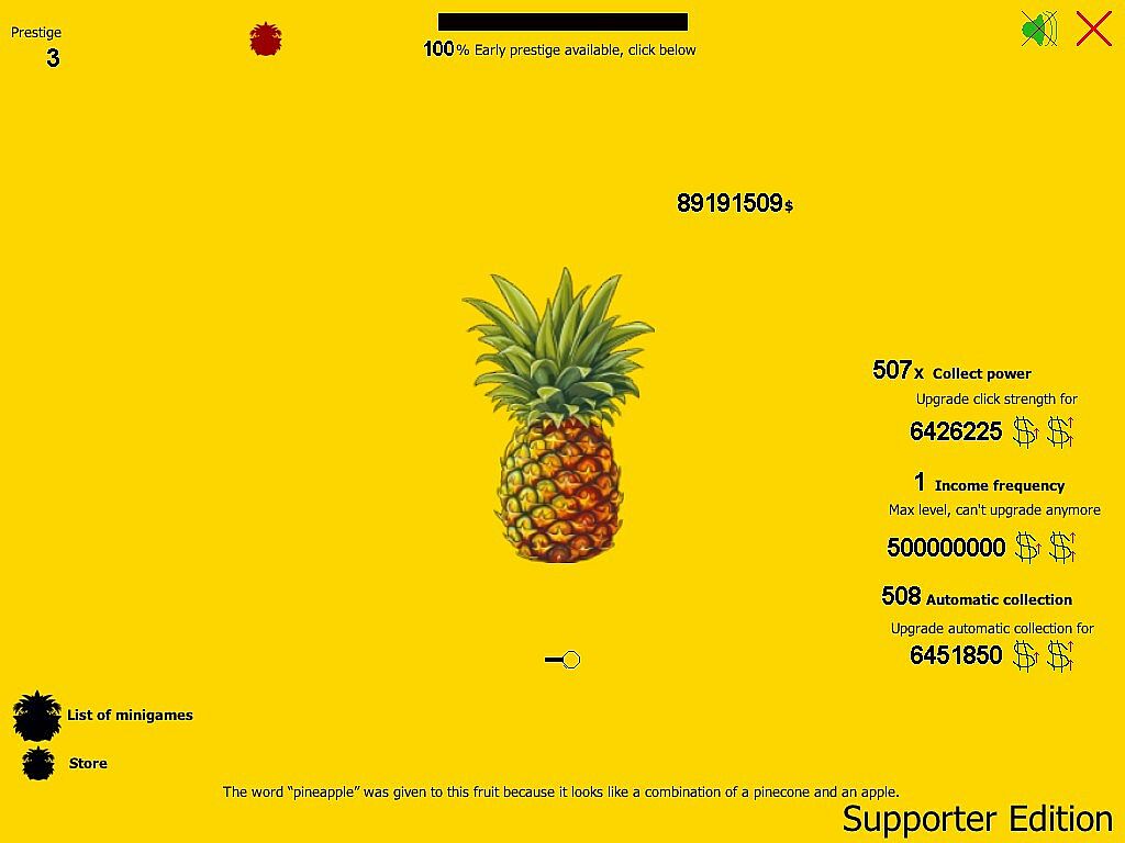 For anyone that would want to support project Ananas - Pineapple Idle game, its giveaways in a form of random lotteries, its future updates and creation of more traditional games, Ananas - Pineapple Supporter Edition is available!