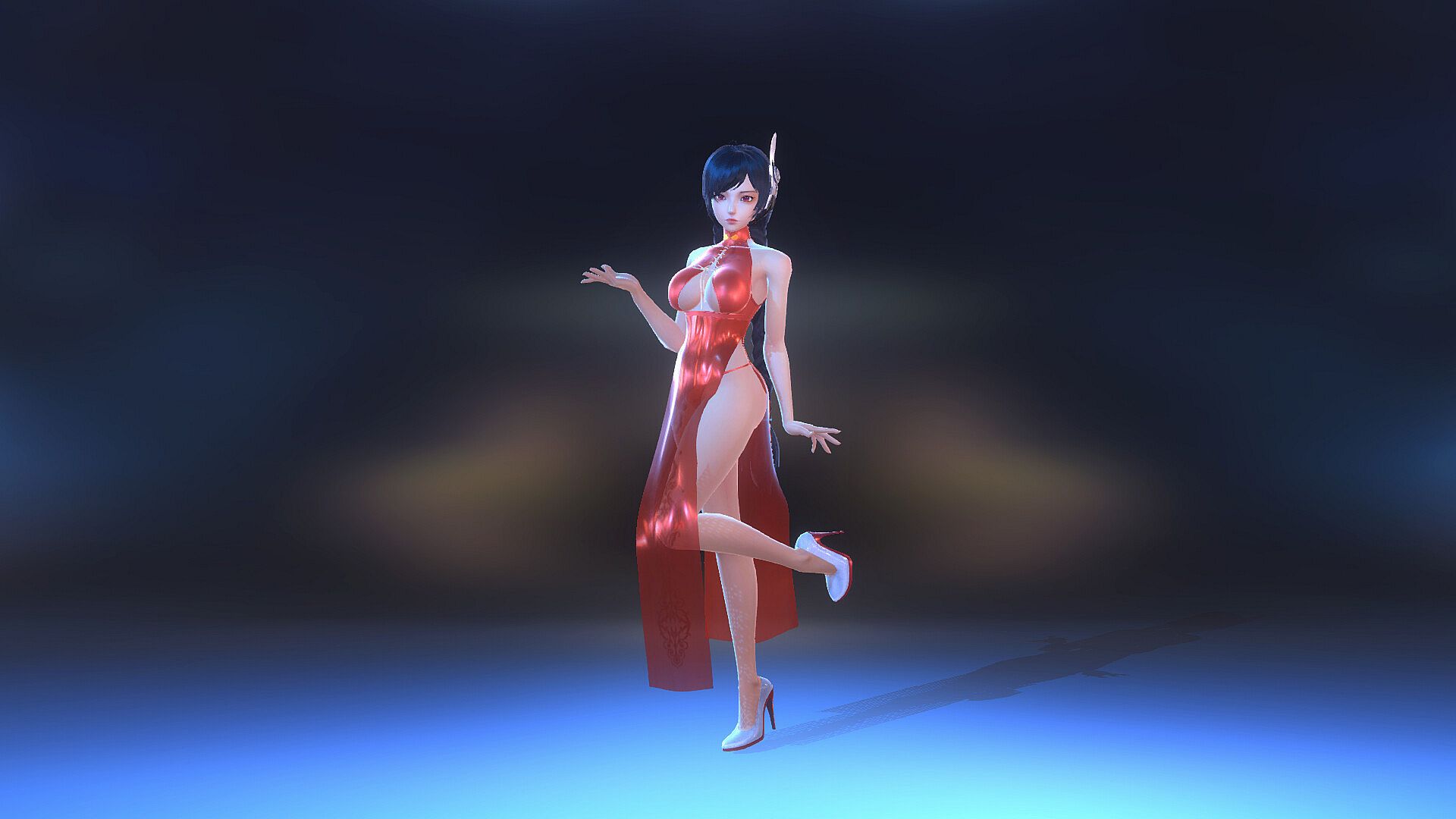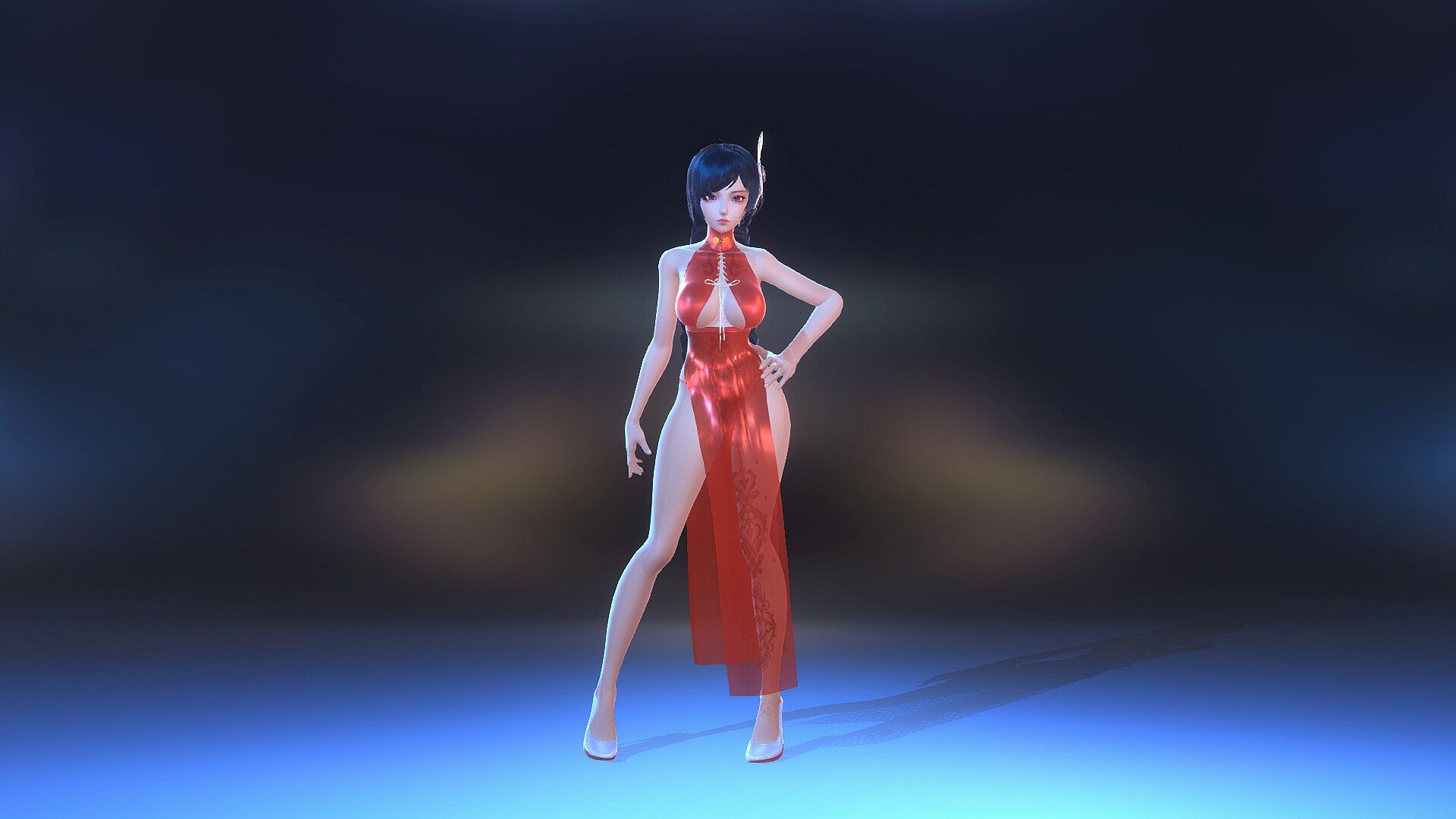 Select the High-Slit Cheongsam (Red) fashion that has been unlocked after purchase to wear.