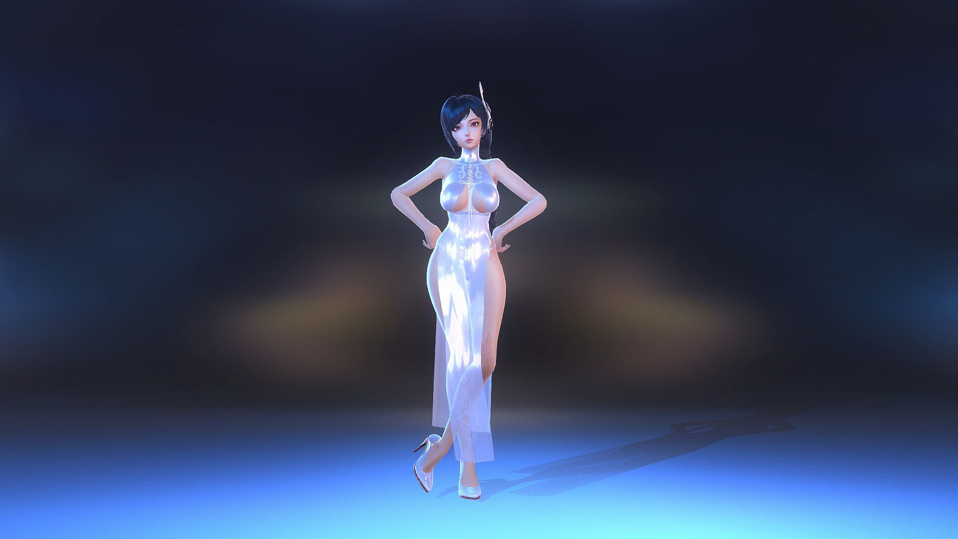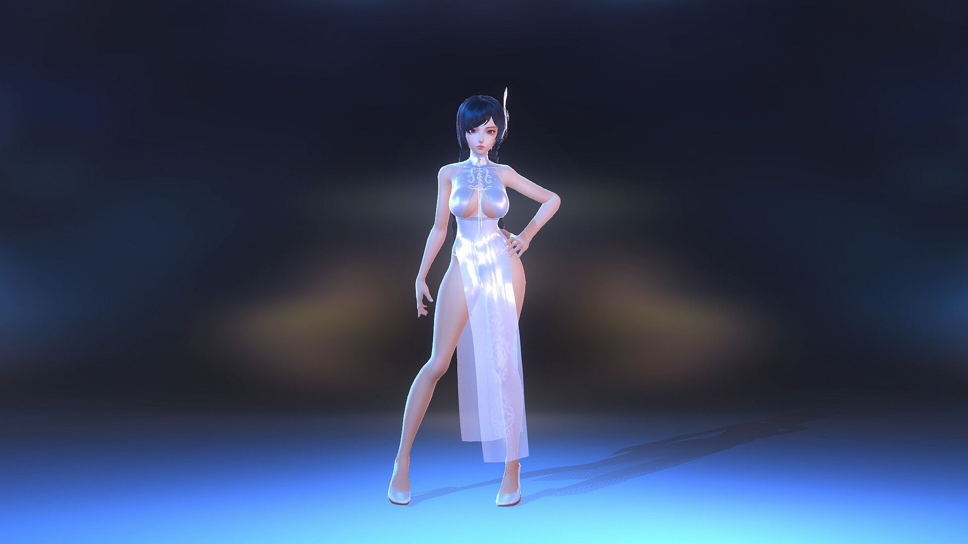 Select the High-Slit Cheongsam (White) fashion that has been unlocked after purchase to wear.