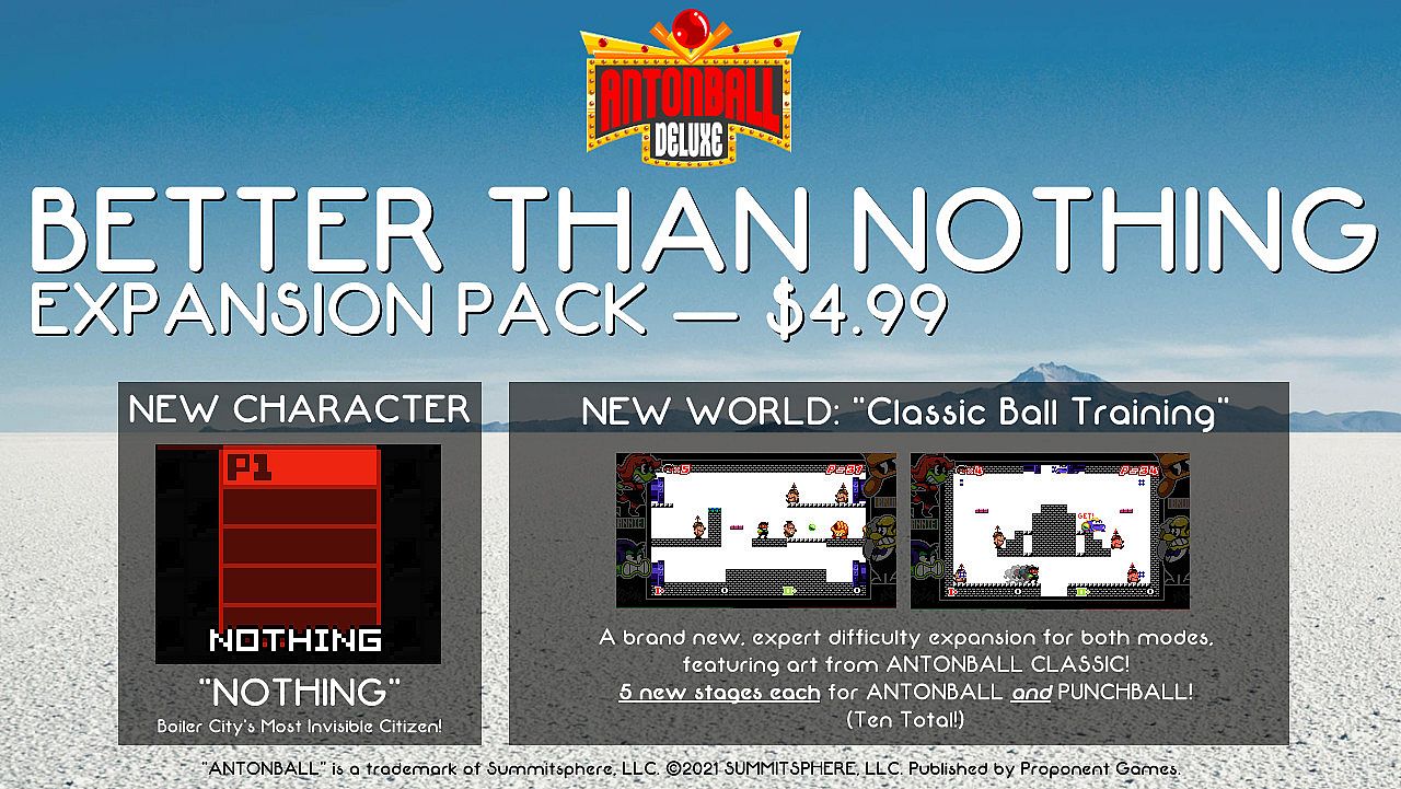 When people ask us what our first DLC for Antonball Deluxe is going to be, we've always replied: Nothing! Literally Nothing! ...and BOY HOWDY, did we deliver: