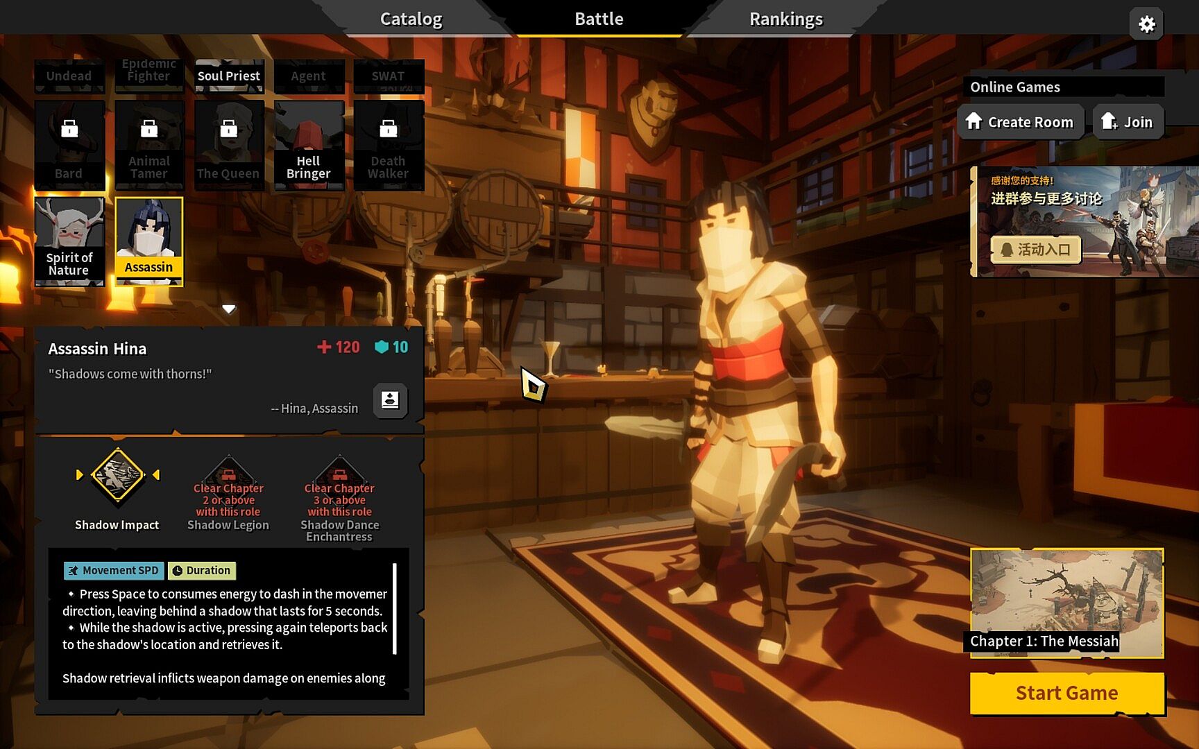Hina's Shadow Dance: Dash forward with incredible speed, leaving behind illusions to confound enemies, making your attacks omnipresent like a phantom.