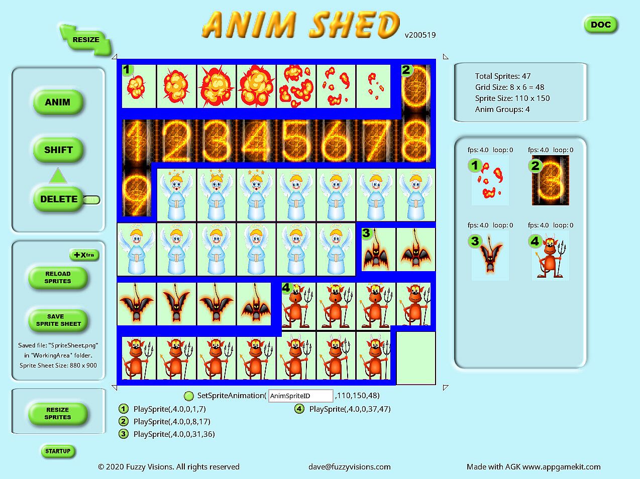 - AnimShed adjusts the Sprite Sheet size automatically on most actions