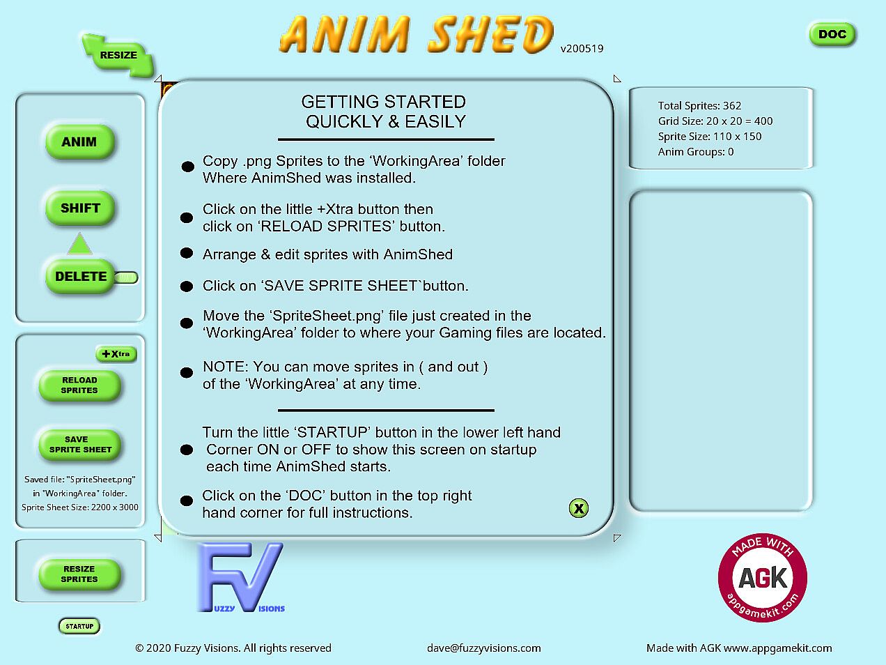 - AnimShed comes supplied (from 'The Game Company' ) with 66 sprites to help you familiarise yourself with AnimShed