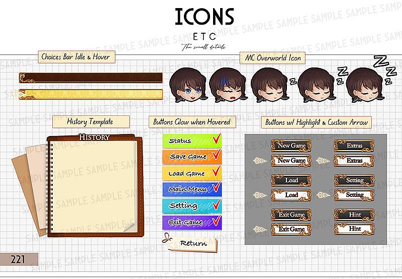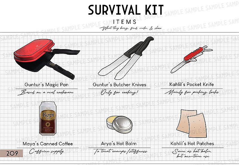 Explore the 351-page artbook packed with visuals from Nusantara: Bermuda. It showcases backgrounds, in-game CGs, early character concepts, item icons, GUI icons, chibi art, and NPC designs. Detailed step-by-step background processes add depth to the collection.