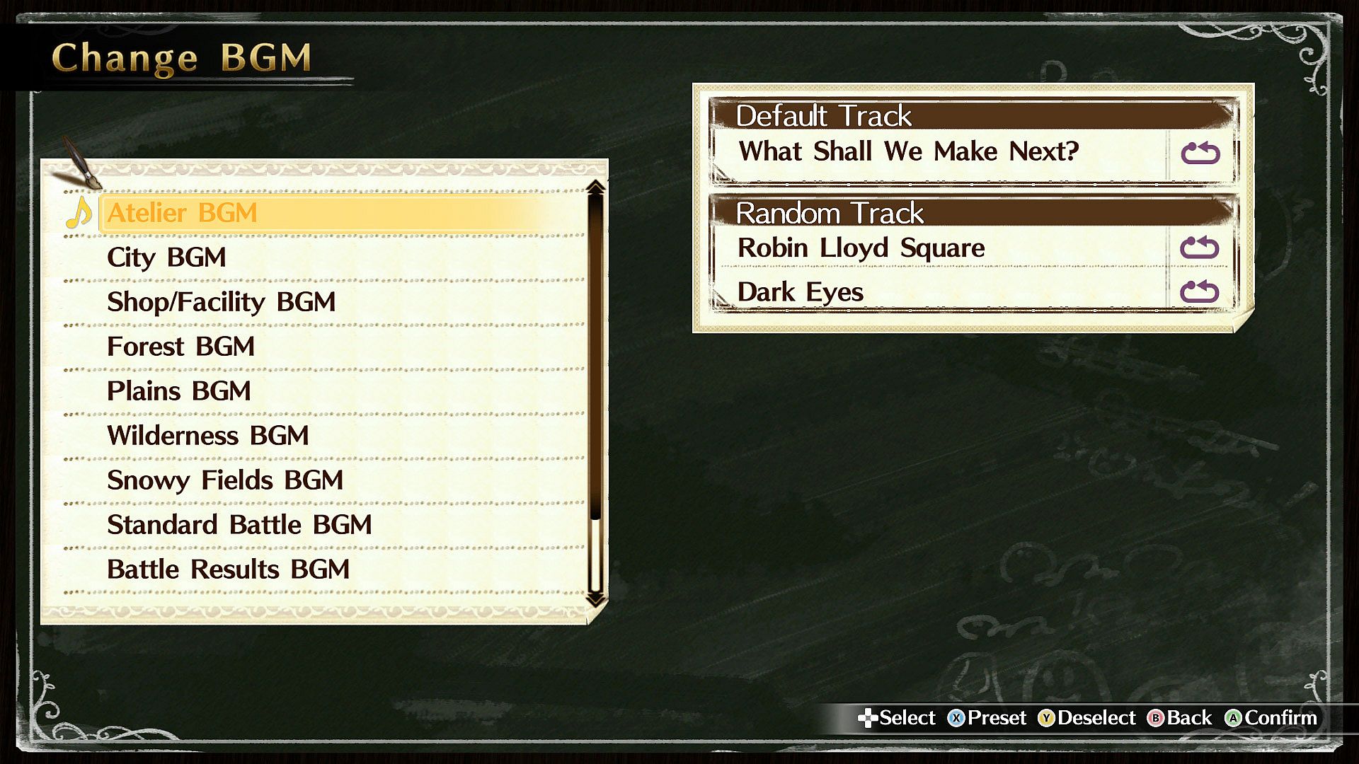 BGM can be changed at the desk in the Atelier.