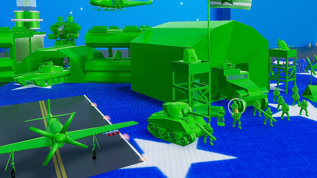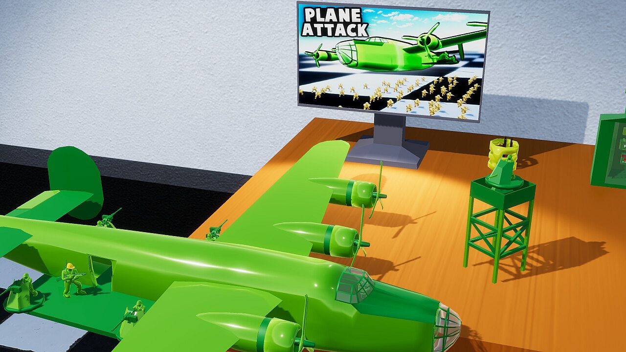 Attack on Toys is a 3rd-person shooter mixed with combination of Real-time strategy as toy army soldiers. As the Green-Army defend your HQ at all cost from invasion of the Tan-Army. How long will you last?