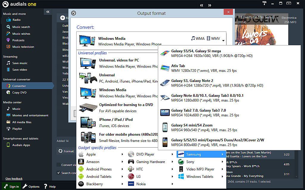 - The Video Format Converter: Convert unprotected Internet videos, TV shows from media centers or protected movies purchased in shops with the Audials Video Converter. The converter provides you with files optimized for playback on any of your devices, while also giving you the files in the highest quality available.