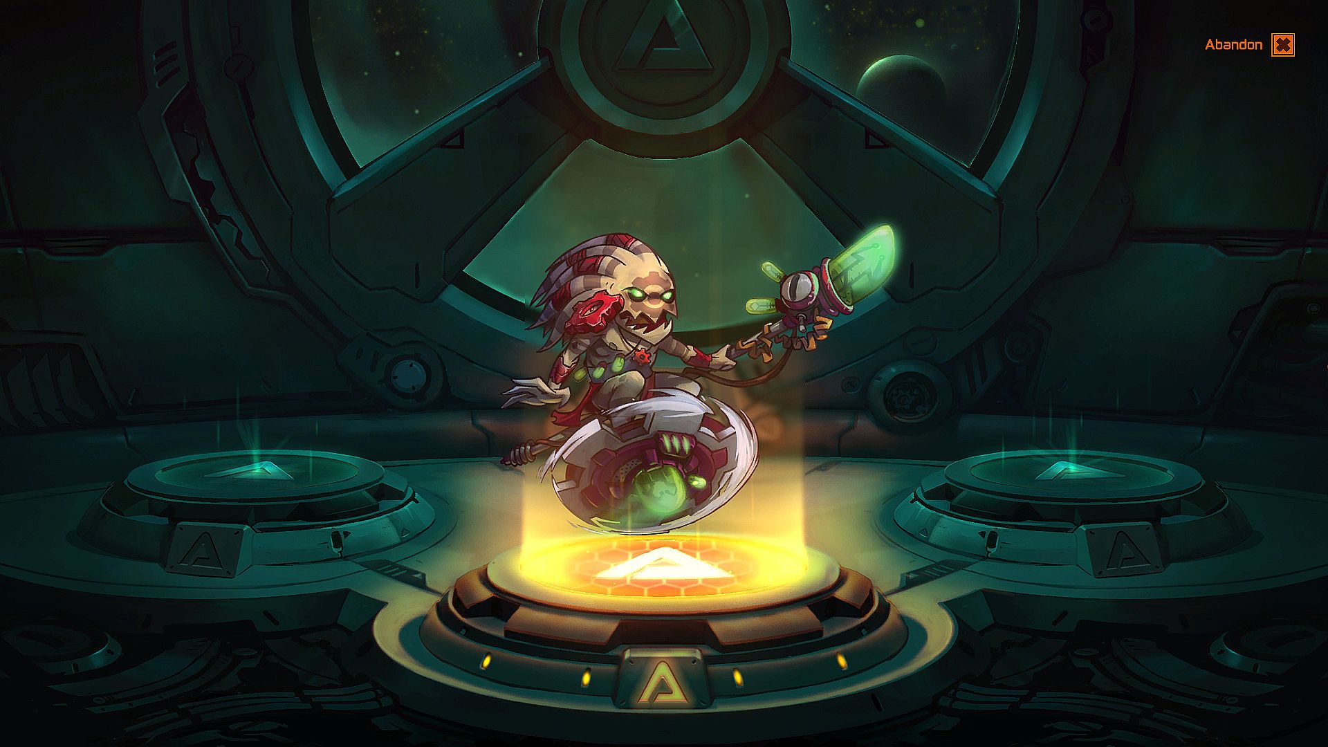 Skree was found by the Awesomenauts on the Starstorm hiding in one of his shrines in the Starstorm’s ventilation systems, praying to make the evil robots go back to sleep. Thinking the Awesomenauts were magical spirit-guides, Skree adopted a new vision quest and joined the Awesomenauts to seek out better spirit-gods to worship.