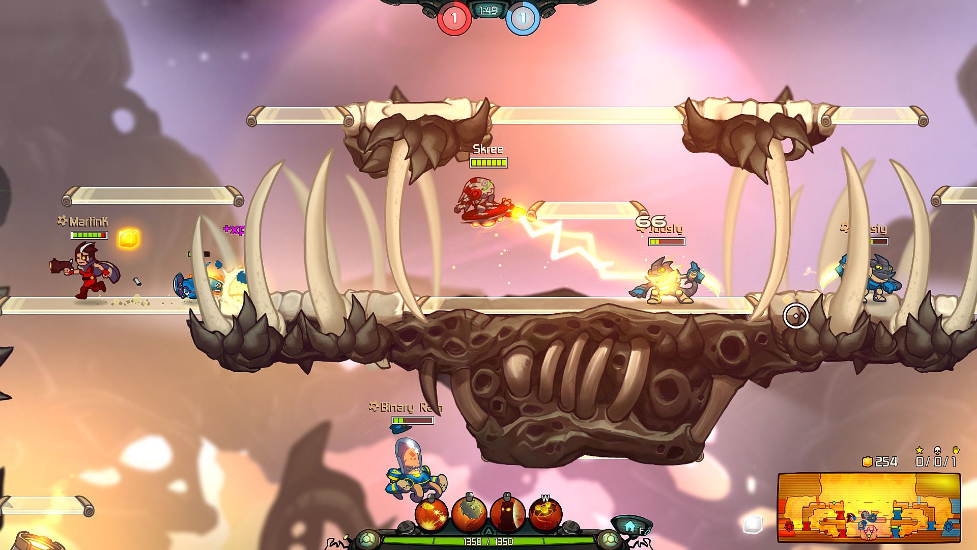 Skree is a moderately-challenging harasser that shoots lightning and summons totem that blocks enemy movement. He is also able to deploy a sawblade, and comes equipped with the following abilities: