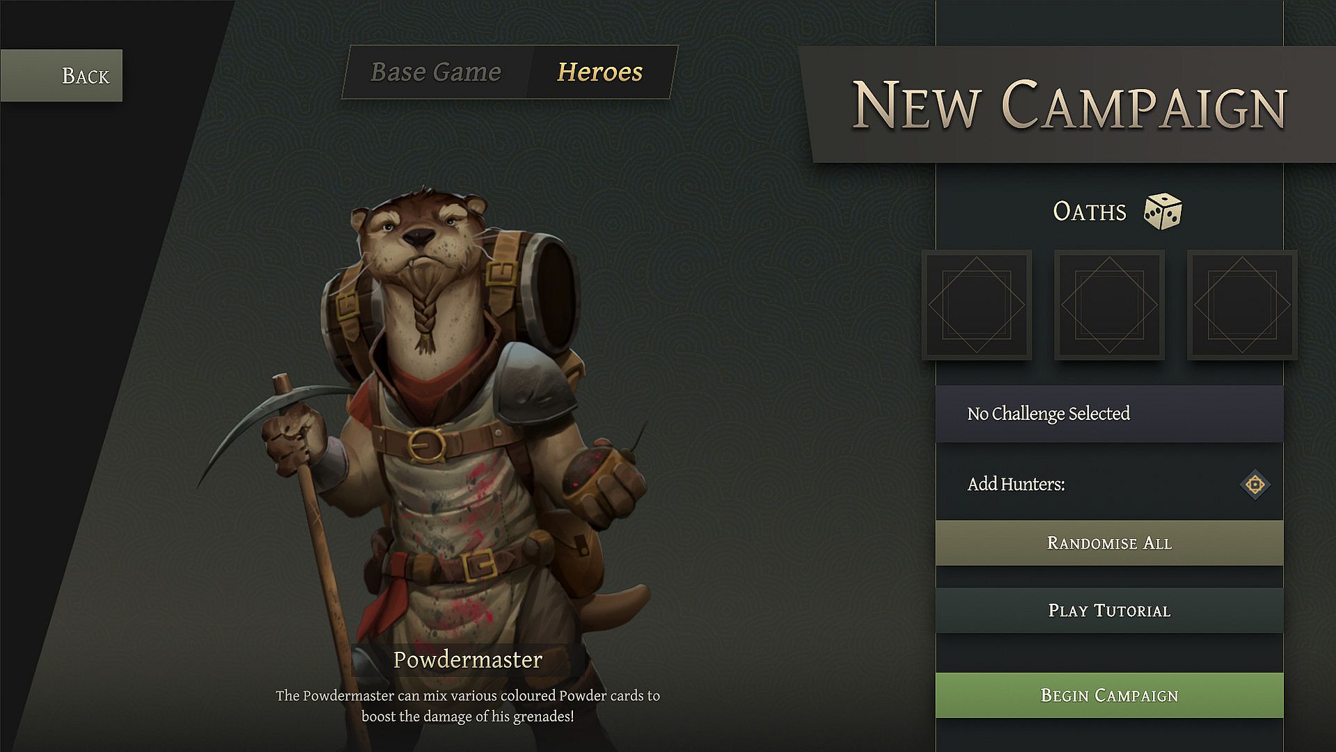 The Powdermaster must be chosen as a solo starter character, who must survive the entire duration of a campaign, but you can still recruit additional party members along the way!