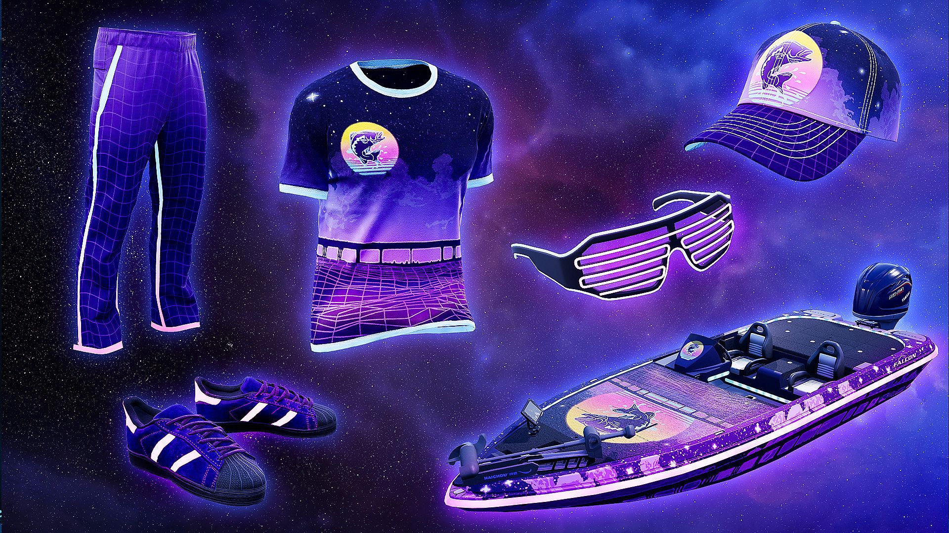 Deck your boat and angler out today with the Synthwave boat wrap, special neon strip clothing, and the first ever pair of in-game glowing shoes to match. The cosmetic pack also comes with a set of unique Mastery Challenges so you can unlock an exclusive pair of fluorescent glasses through a variety of fishing challenges.