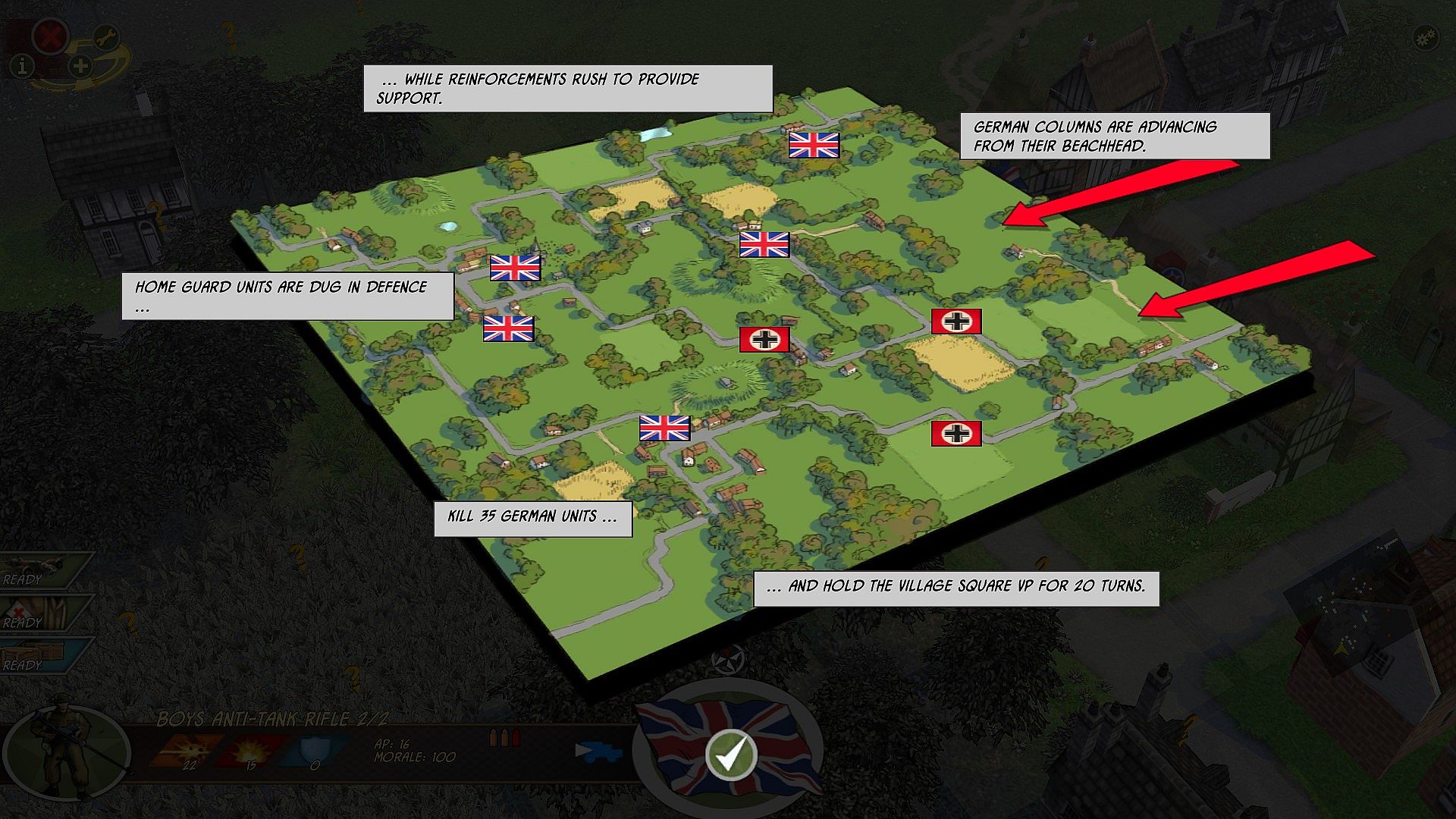 It is September 1940, and the Germans launch their invasion of Britain. In this fictional "What If?" Campaign , you command the Home Guard's desperate counterattacks against German glider troops and the tenacious defence of the South Coast Sea Front. Mount "Butcher and Bolt" missions with the clandestine Auxiliary Units or land coastal raiders from Motor Gun Boats. Can you hold back the might of Operation Sealion?