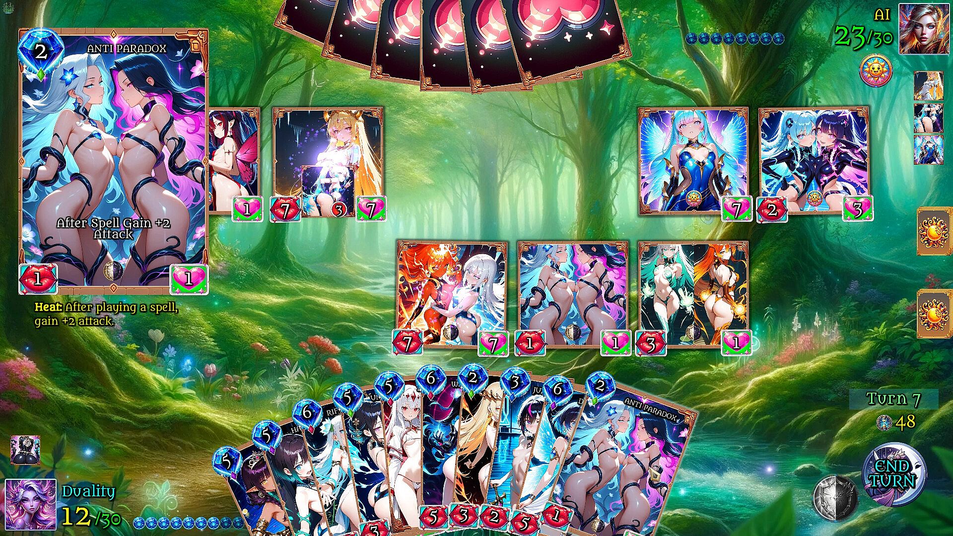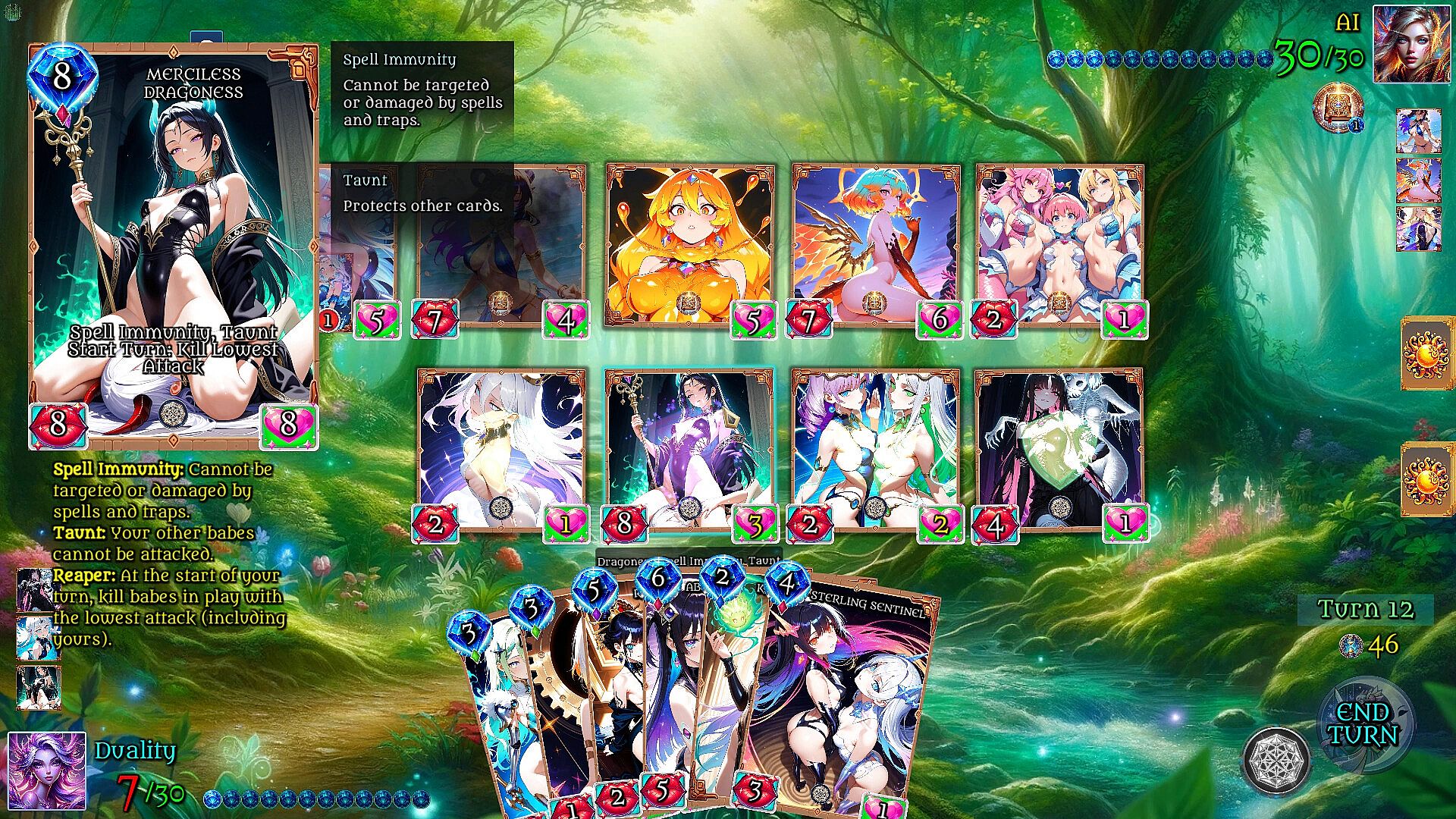 Defeat Challenging AI Boss Decks: Conquer the Dragon Clan & Succubus Queen. Earn coins, buy card packs, and collect blessed cards.