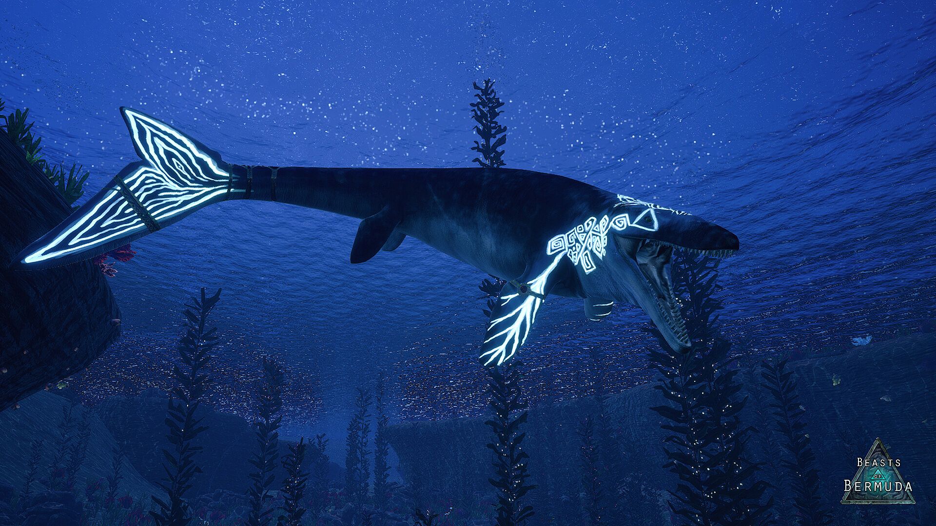 Show your support for Beasts of Bermuda with the Mosasaurus Supporter Warpaint. This content equips your Mosasaurus with special eyes and an overlay featuring three color choices, along with a customizable glowing marking. Equip only one overlay at a time on the creature. It delivers Power, Mobility, and Survival supporter designs for eyes and warpaint.