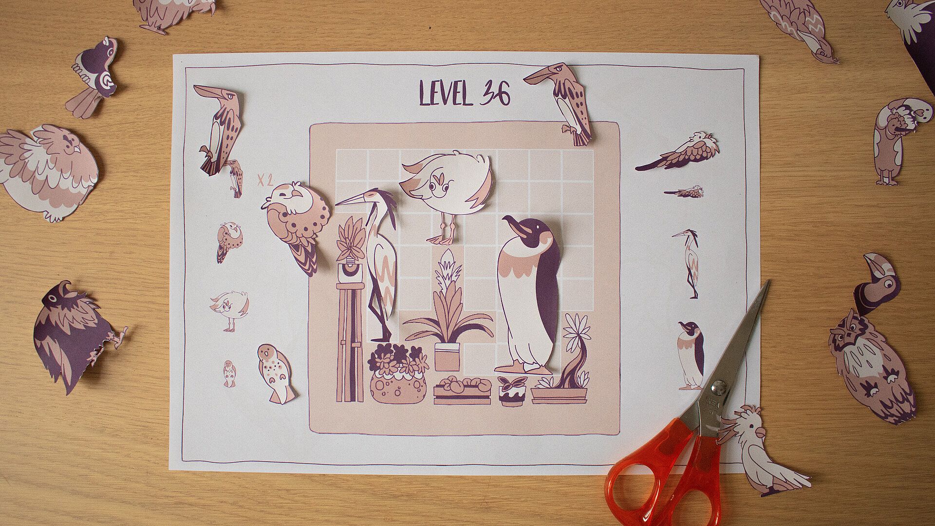 We created this DLC to provide a nice way to get some off-screen time. Focus on some meditative paper cutting, or gathering your kiddos around the table and getting the birds nicely colored, before organizing them (neatly).