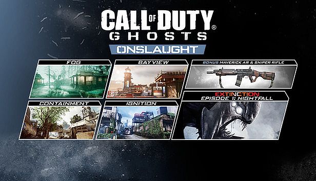 Welcome to Onslaught, the first downloadable content pack for Call of Duty®: Ghosts, featuring four unique Multiplayer Maps, an all-new dual purpose Assault Rifle/Sniper Rifle, and the first installment in Extinction’s four-part episodic narrative.