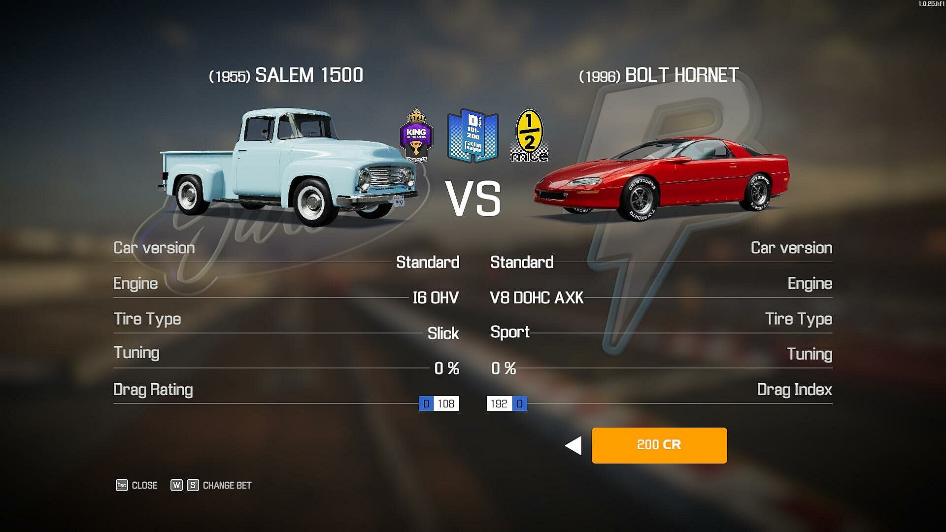 Each car now has a "Drag Rating" index that assigns it to a particular racing category. Remember that any change in the tuning of a car, later requires checking it on the Dyno to calculate the new index.Manual transmission / ECS / TCS