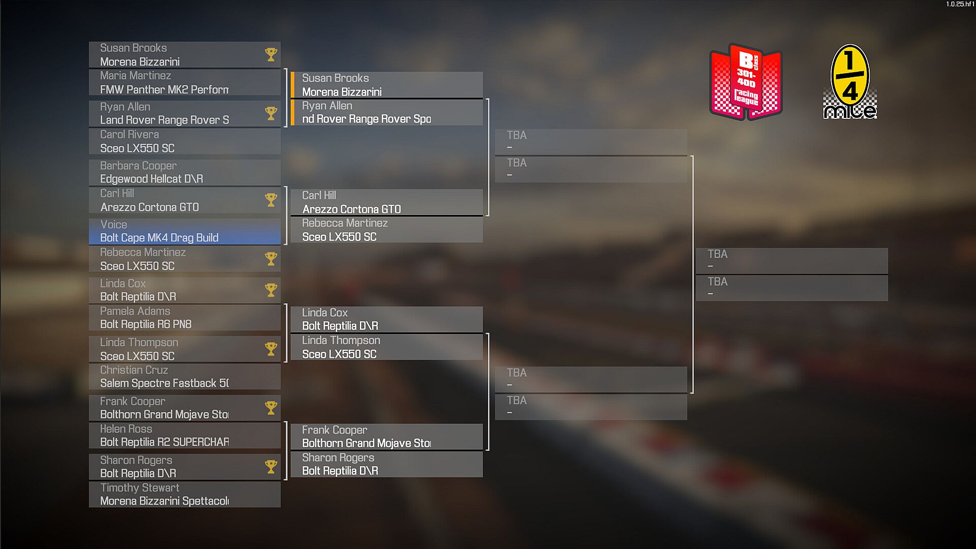 -Quick Race - Pick a class and race with randomized car setups.