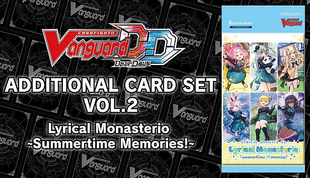 Ready to ride? Set a price alert on XD Deals and grab a discounted Cardfight!! Vanguard DD: Additional Card Set Vol.2 [D-LBT03]:Lyrical Monasterio ~Summertime Memories!~ Steam key the moment it reaches its next historical low.
