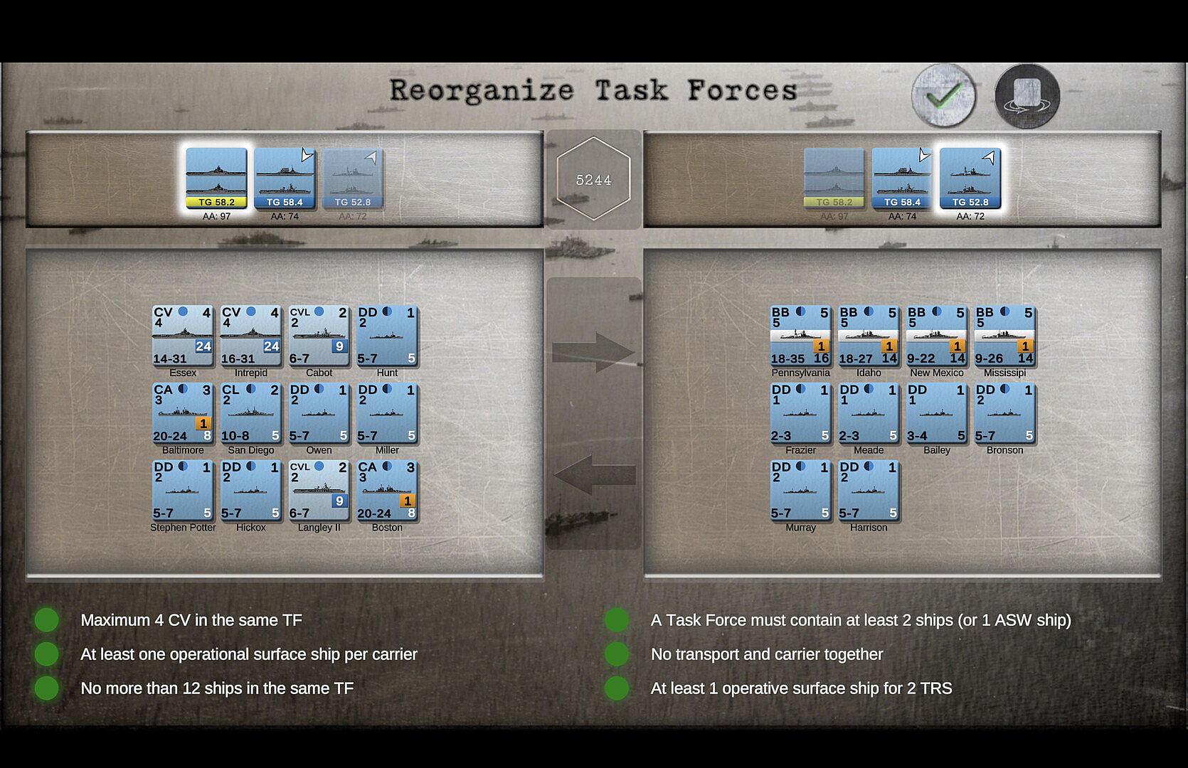 This scenarios covers 3 major US operations of Feb 44: Securing both Kwajalein and Eniwetok, and a massive carrier airstrike against Truk, the large Japanese naval base in the Caroline Islands.