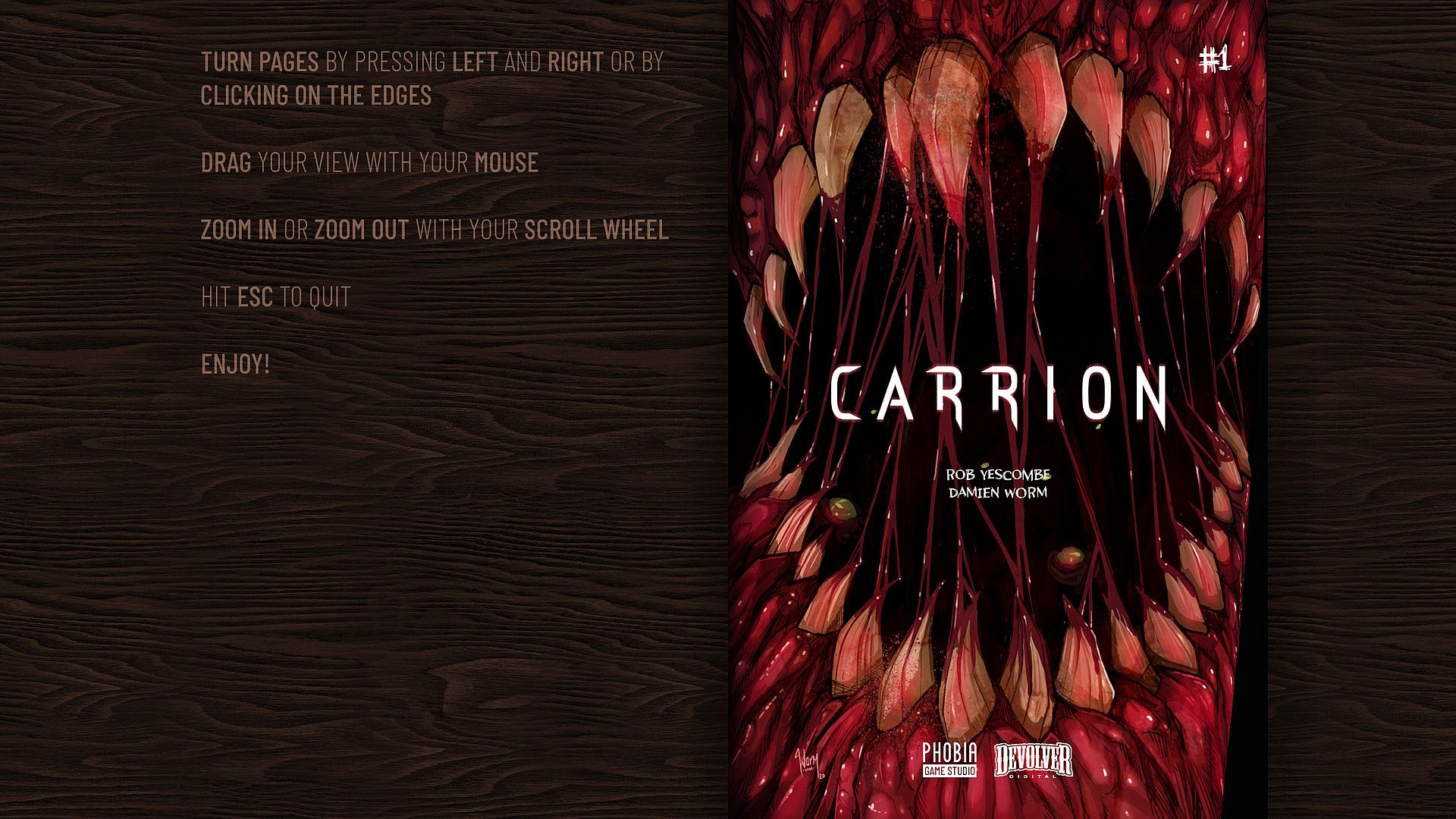 Includes CARRION Digital Comic Book, The Art of CARRION Art Book, and an exclusive set of CARRION wallpapers. Featuring an exclusive track The Worm Turns by Cris Velasco.