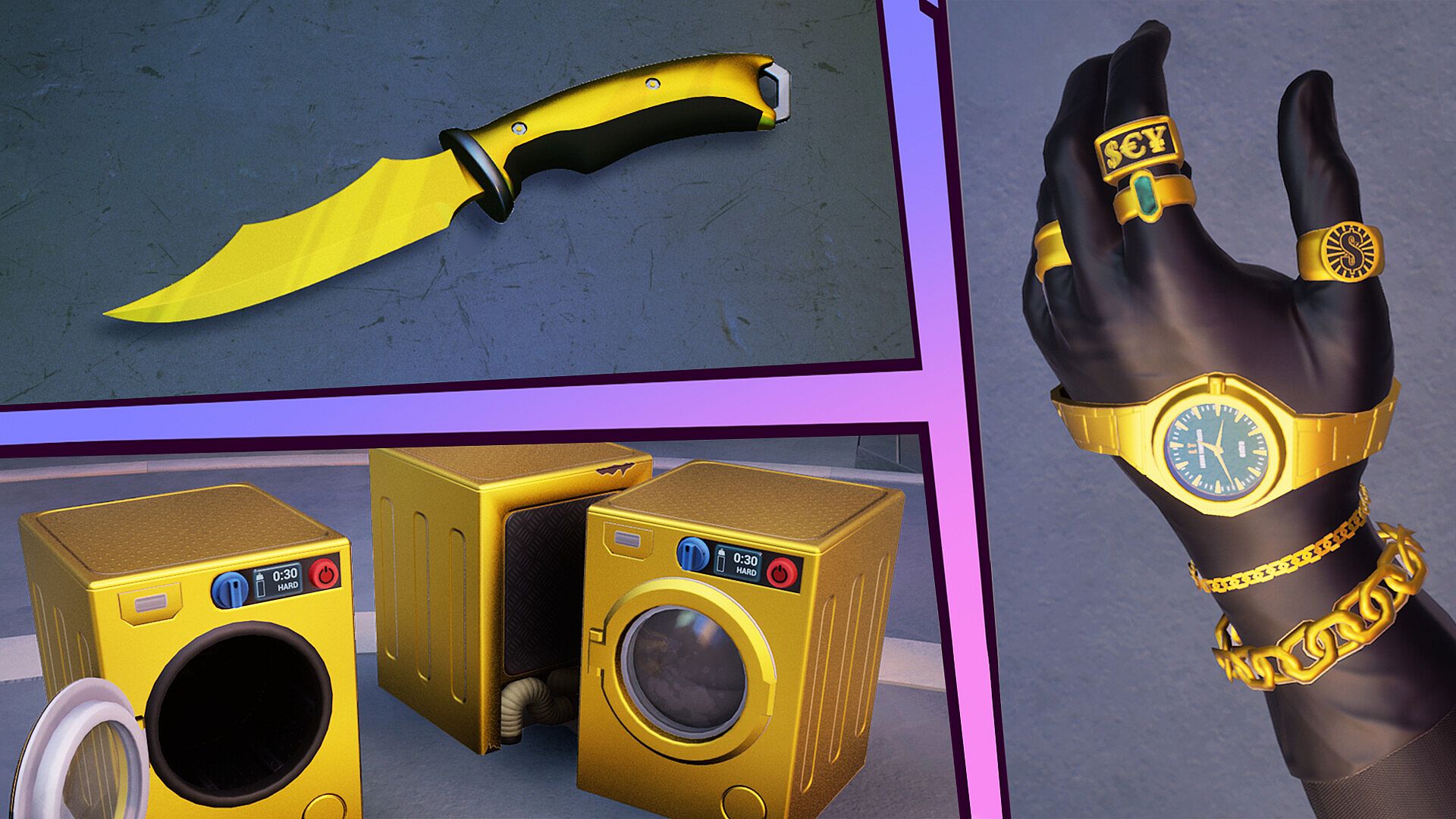 Enhance your cleaning experience with the Luxury Loadout cosmetic pack! This DLC outfits your cleaning tools with dazzling gold finishes, allowing you to clean with style.