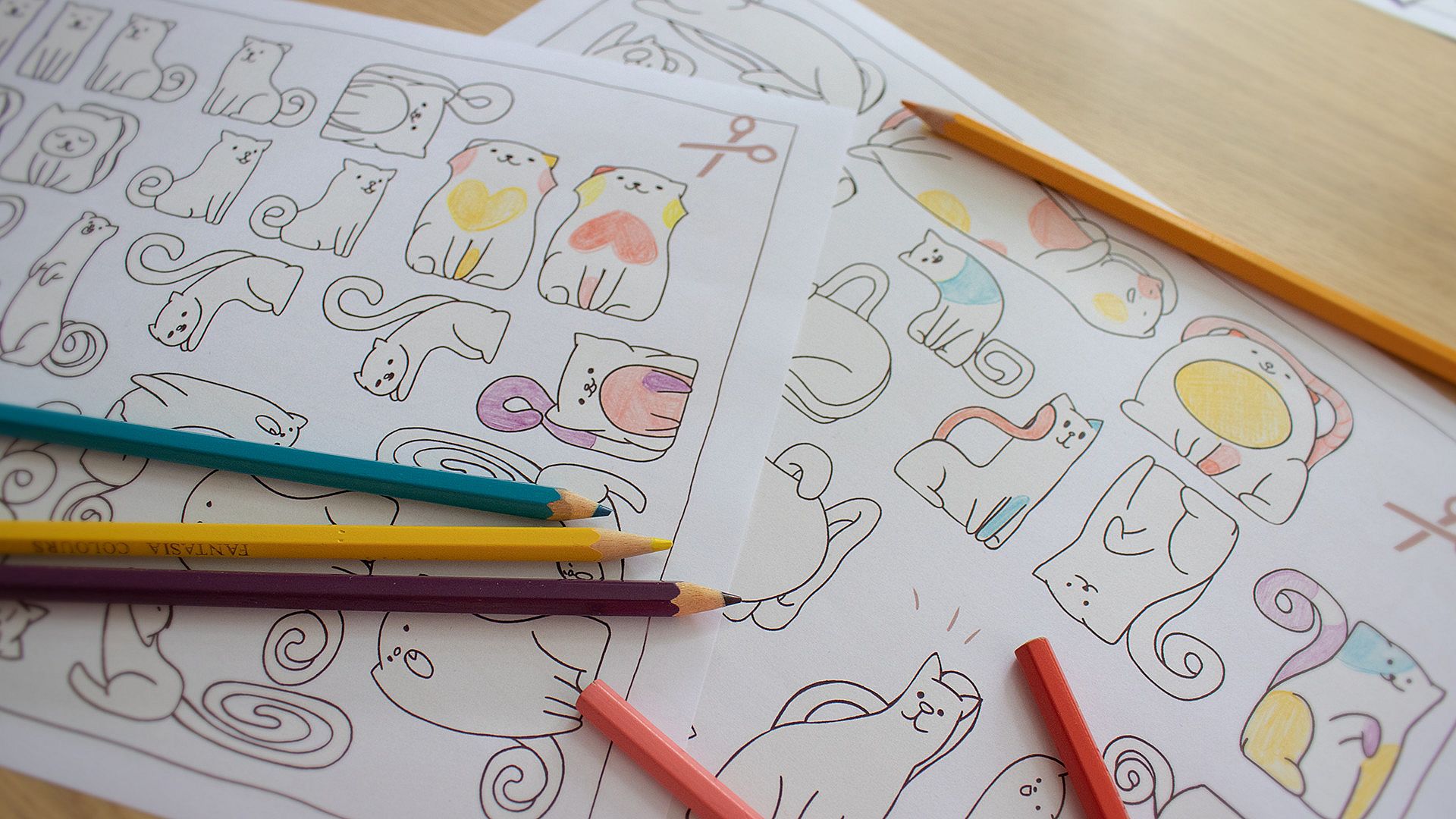 Especially during these challenging times, this could provide a nice way to get some off-screen time and focus on some meditative paper cutting, or gathering your kiddos around the table and getting the cats nicely colored, before organizing them (neatly).