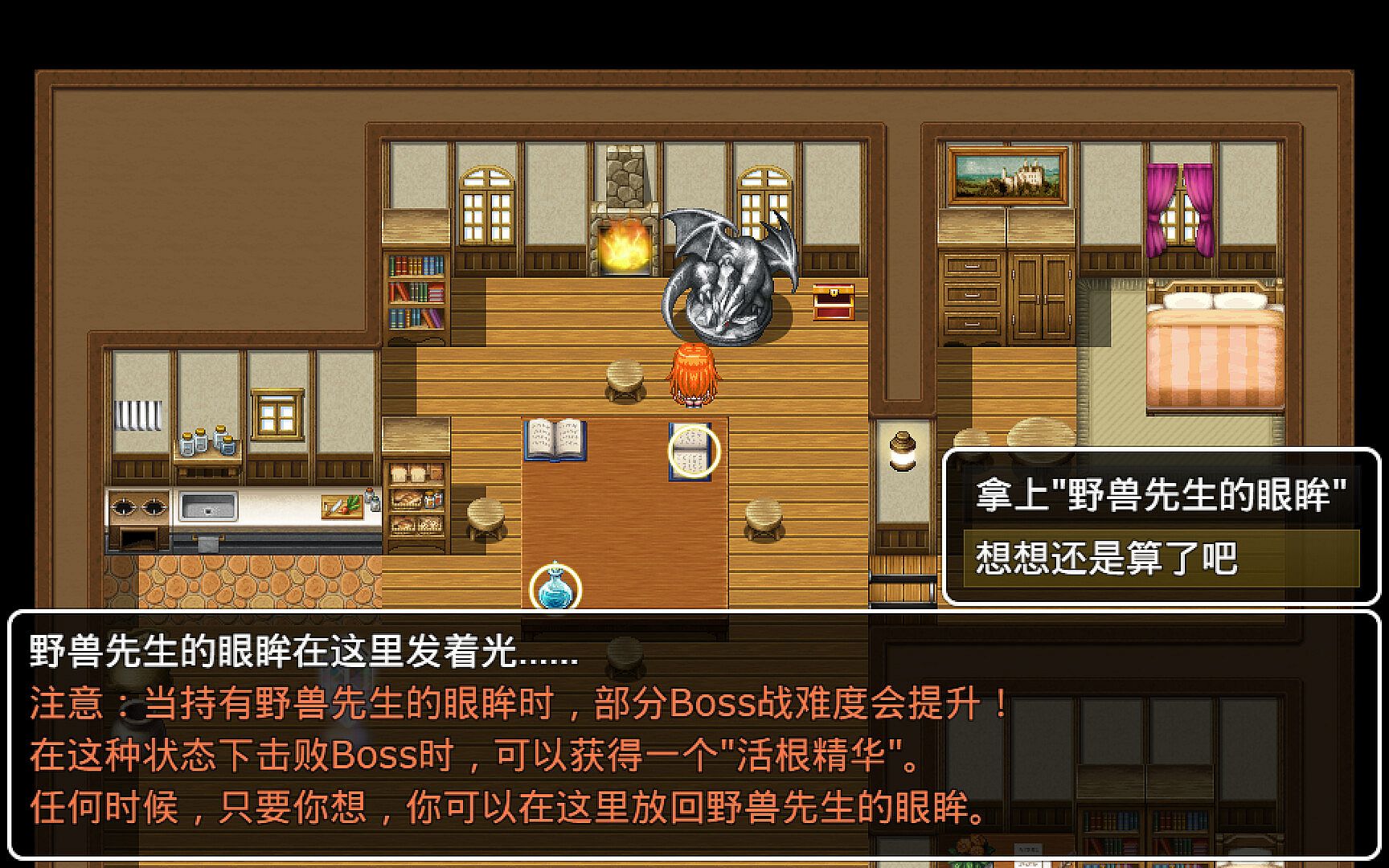 虽然额外的剧情有一些更难的Boss,或者说,这些额外剧情的难度普遍比本体剧情高……但是,还觉得不够有挑战性?那么拿上小白房间的"野兽先生的眼睛"吧!它将强化一些特定的Boss战,通过改变Boss的一些特性,大大提高战斗的难度!还能解锁一些新的Steam成就哦!作者的感谢:
