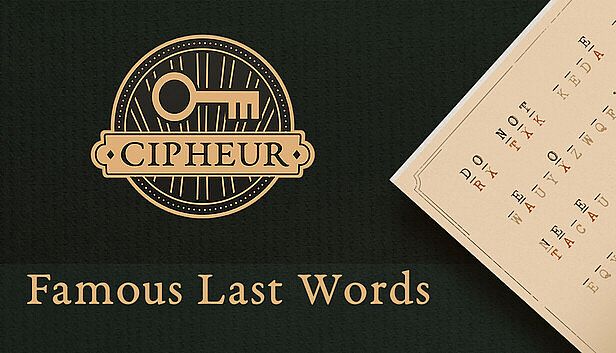 Cipheur - Famous Last Words is free to play! Download it on Steam and start playing instantly. Looking for Cipheur - Famous Last Words DLCs, in-game currency, or cosmetics? Compare 0 offers on XD.deals to find the best deals.