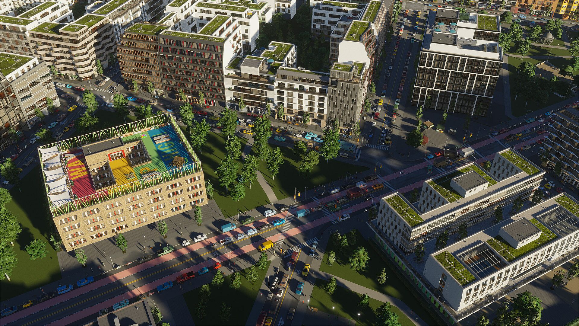 Step into the vibrant heart of city life with the Creator Pack ‘Urban Promenades’. Designed by the community creator ‘Feindbold’, this pack captures the essence of city living. Featuring a variety of service buildings and a mixed housing zone, this pack invites you to create bustling streetscapes and serene public spaces that pulse with urban energy.