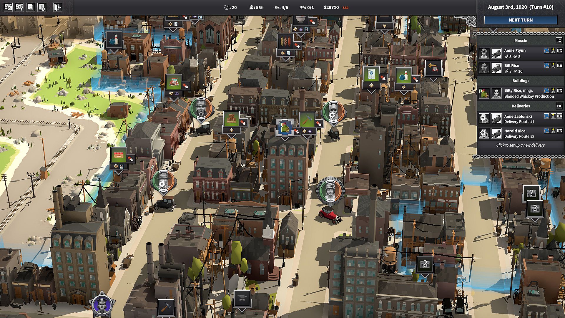 Beyond bringing a charming Irish brogue with you, your crew from the Emerald Isle brings the ability to make all kinds of smooth new whiskeys rarely seen in America. Then once your gambling operations start up, you can create a betting ring to bet on Gaelic Football. Your whiskey know-how will unlock a unique legacy goal at the end of Prohibition.
