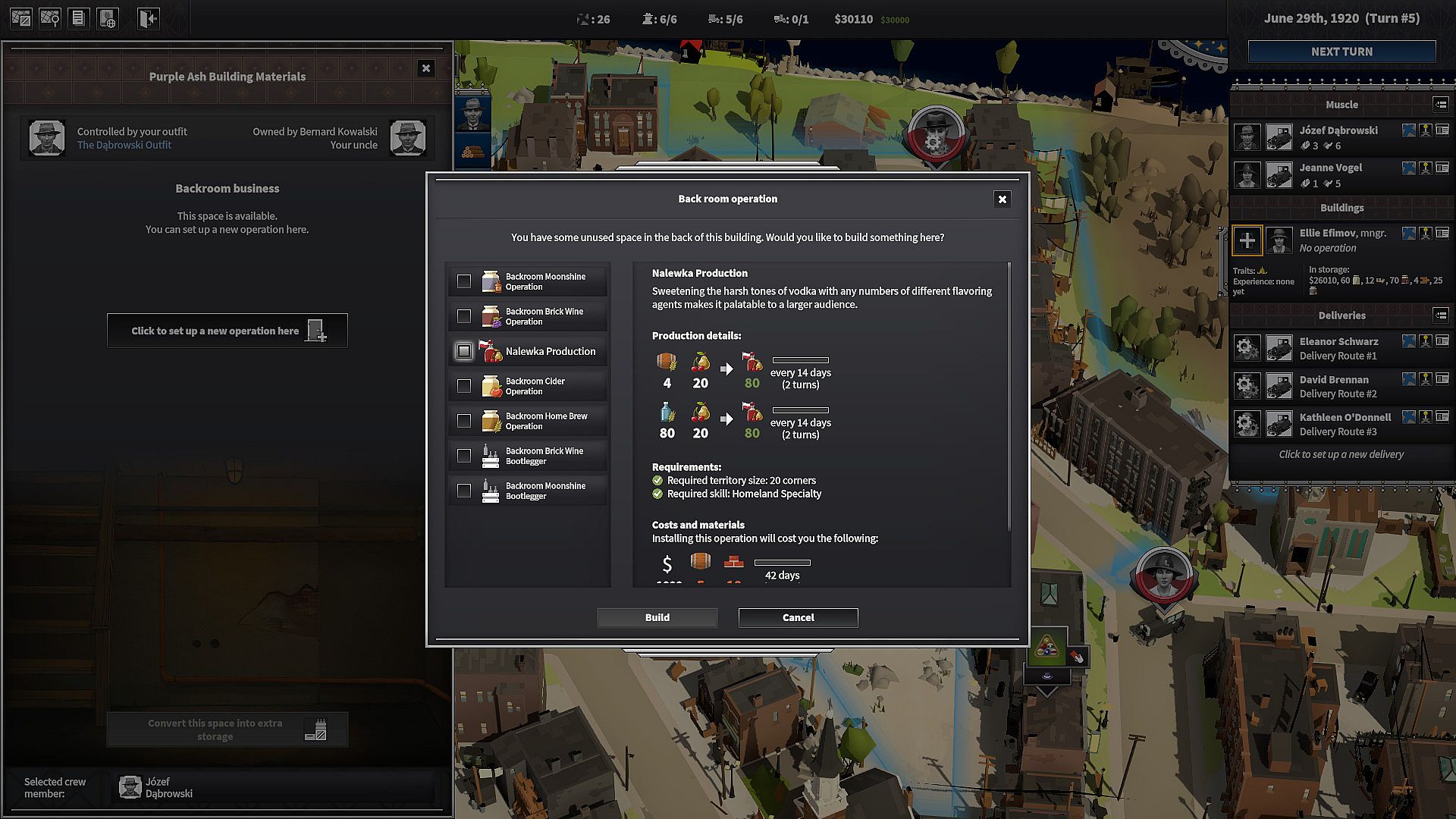 Embrace your Polish heritage while sipping on a traditional nalewka. Revolutionize local alcohol production with this new liquor type, and use your negotiating abilities to push for better pricing. Use your growing influence to support fellow countrymen and achieve a uniquely Polish legacy goal at the end of Prohibition.