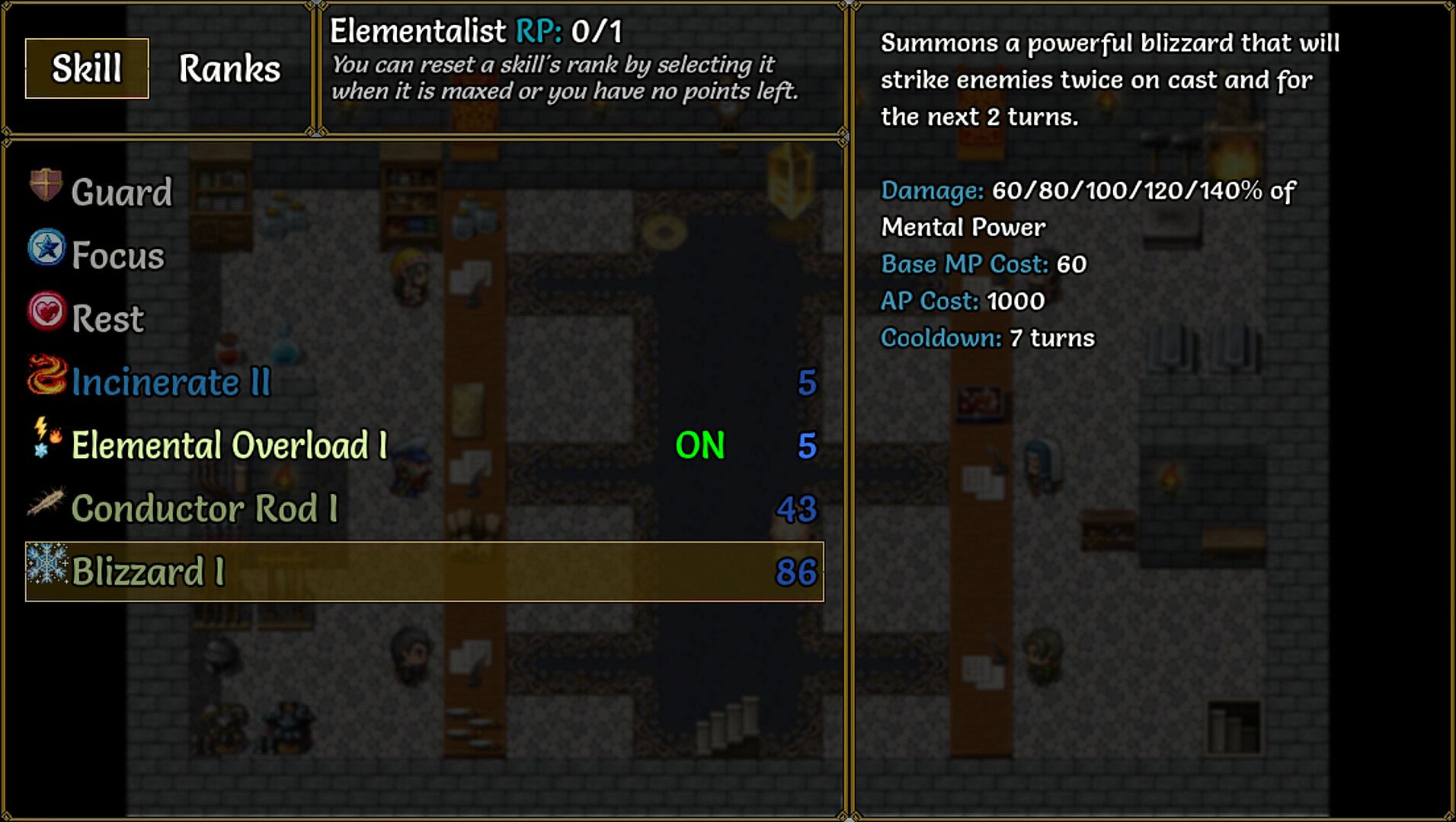 Blizzard: Summons a powerful blizzard to damage enemies every turn.